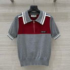 Miu Miu 25 Polo Collar Short-sleeved Top Gray red Tencel