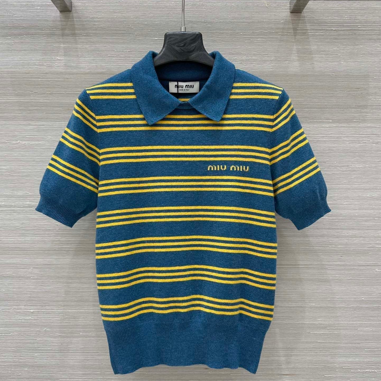 Miu Miu 25 Striped Polo Top Blue Yellow Wool