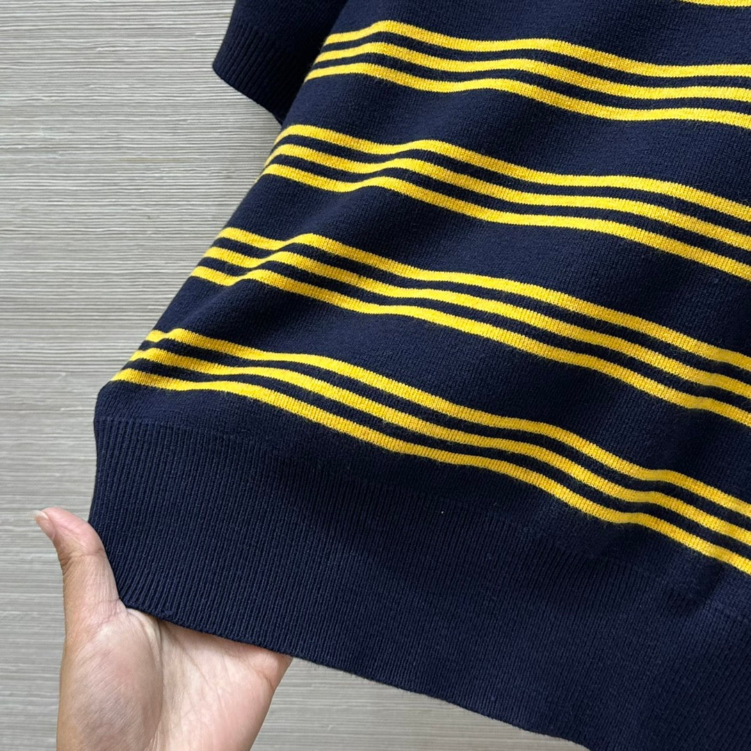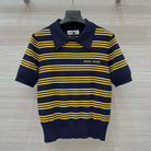 Miu Miu 25 Striped Polo Top Dark Blue Yellow Wool