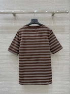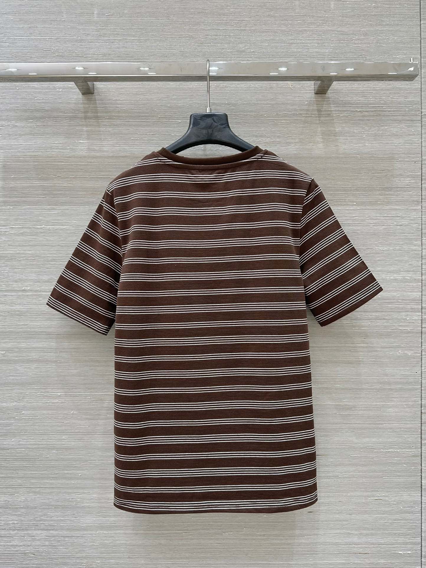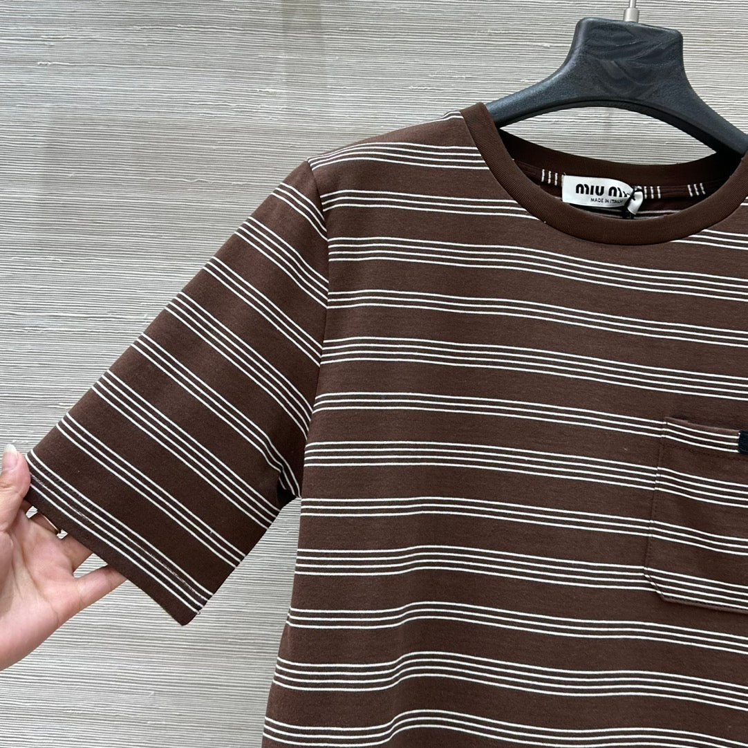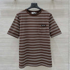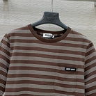 Miu Miu 25 Striped Round Neck Short-sleeved T-shirt Brown Cotton