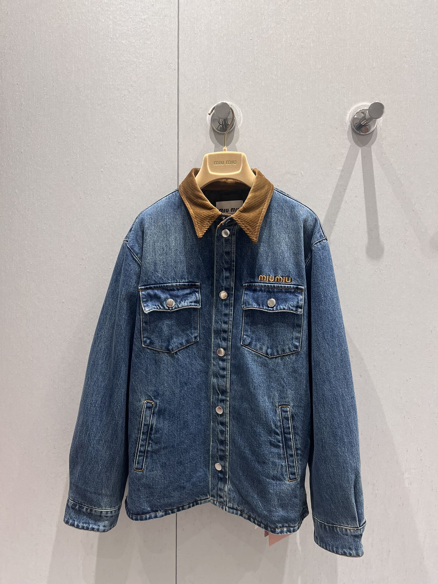 Miu Miu Denim Jacket Blue Brown Cotton 206450
