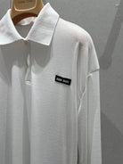 Miu Miu Ribbed Knitted Long-sleeved Polo Shirt White Cotton 208569