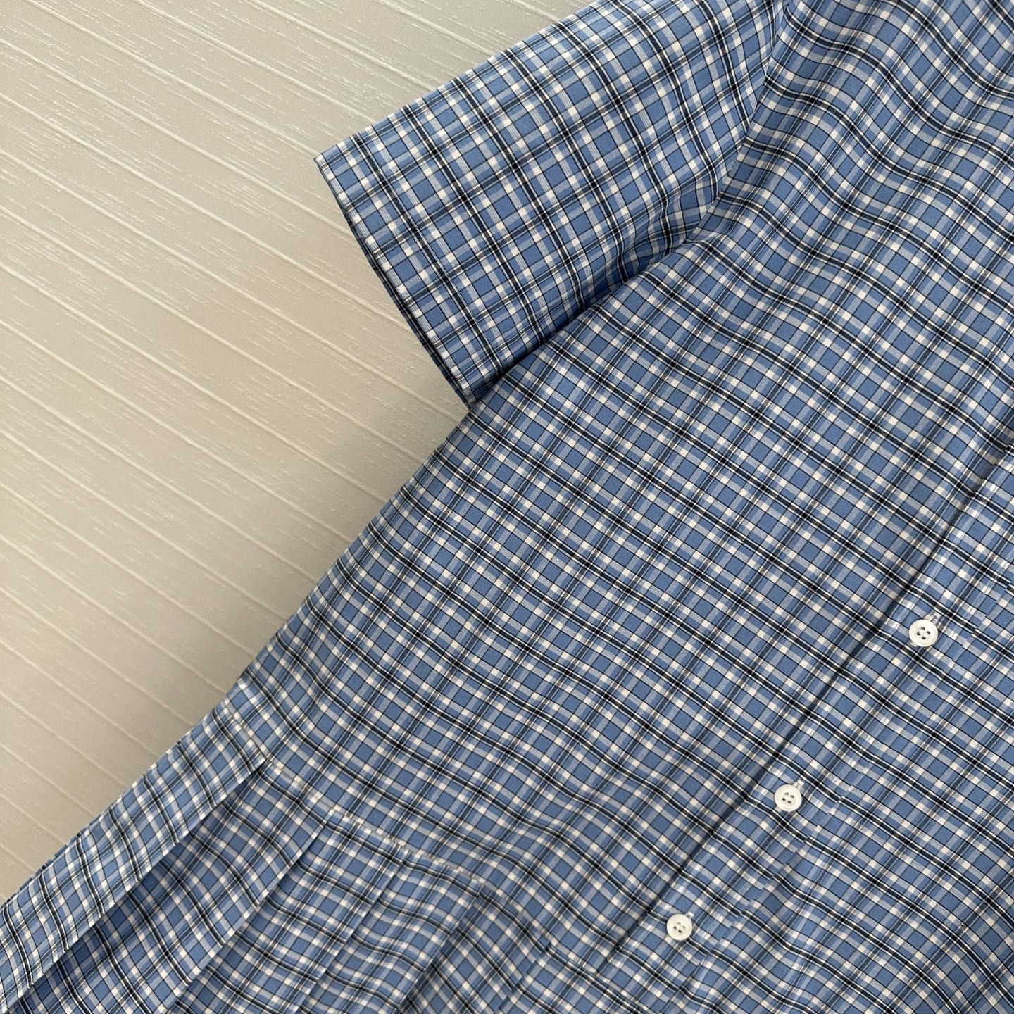 Miu Miu Plaid Pleated Shirt Dress Blue Cotton