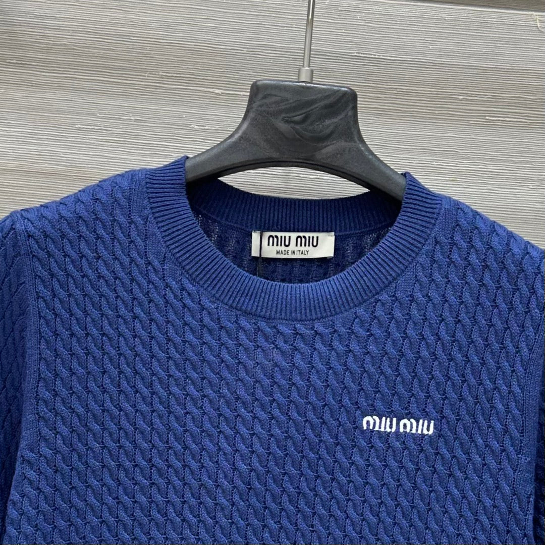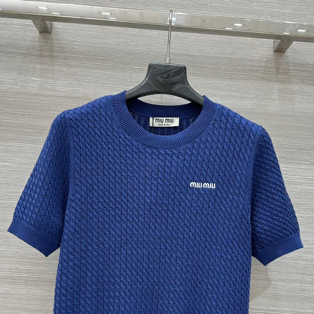Miu Miu 25 Two-piece Knitted Short-sleeved Top Blue White Wool 210549