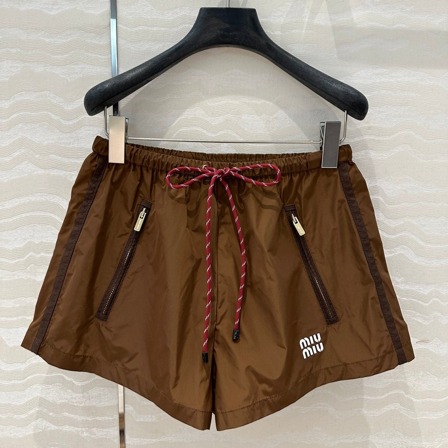 Miu Miu 25 Sport Short Cocoa Brown Technical Fabric