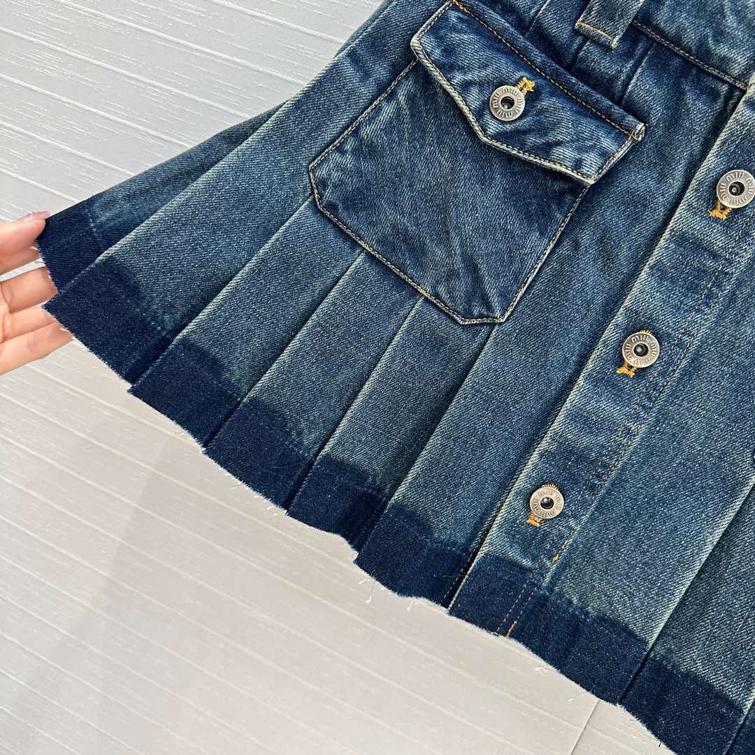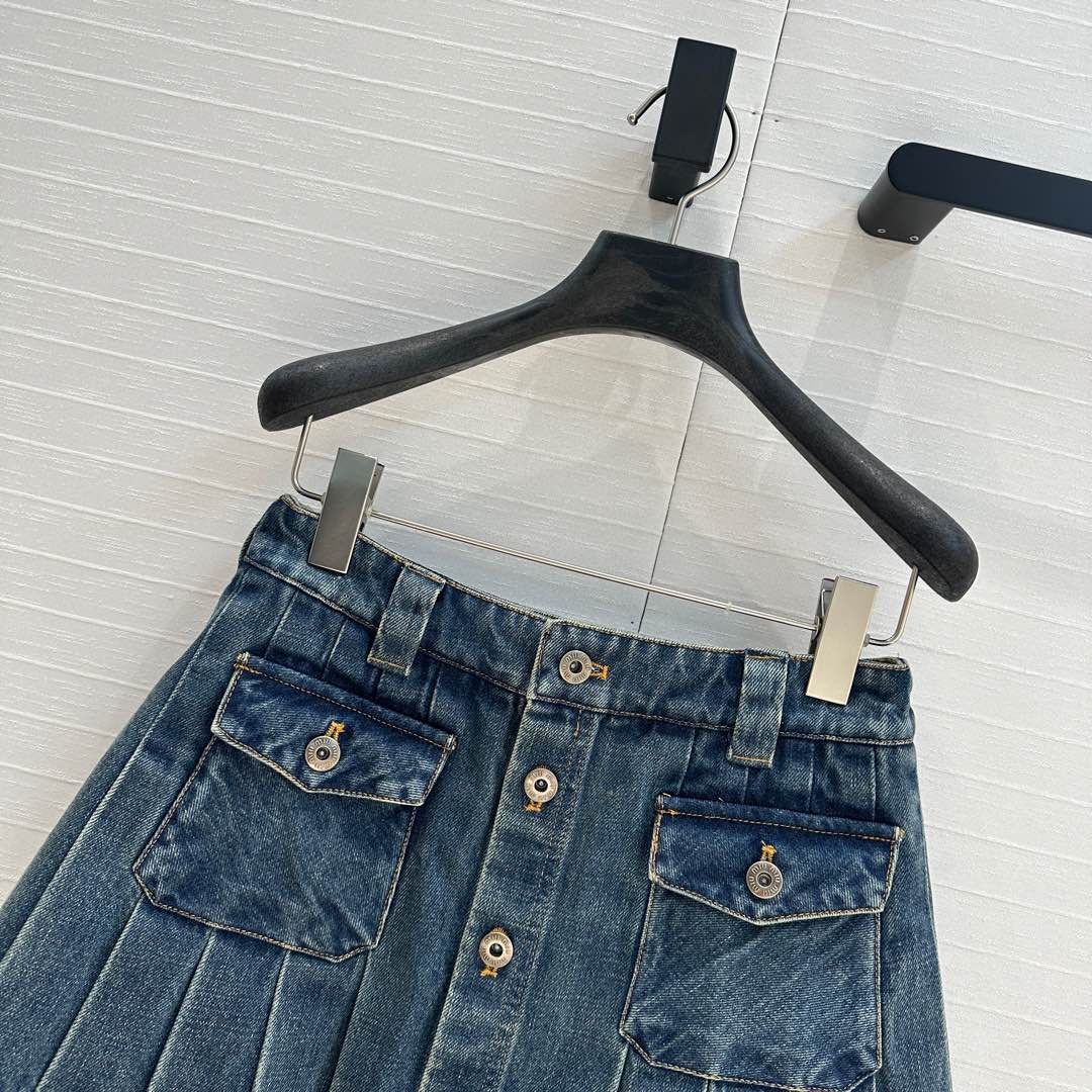 Miu Miu Denim Pleated Long Skirt Blue Cotton