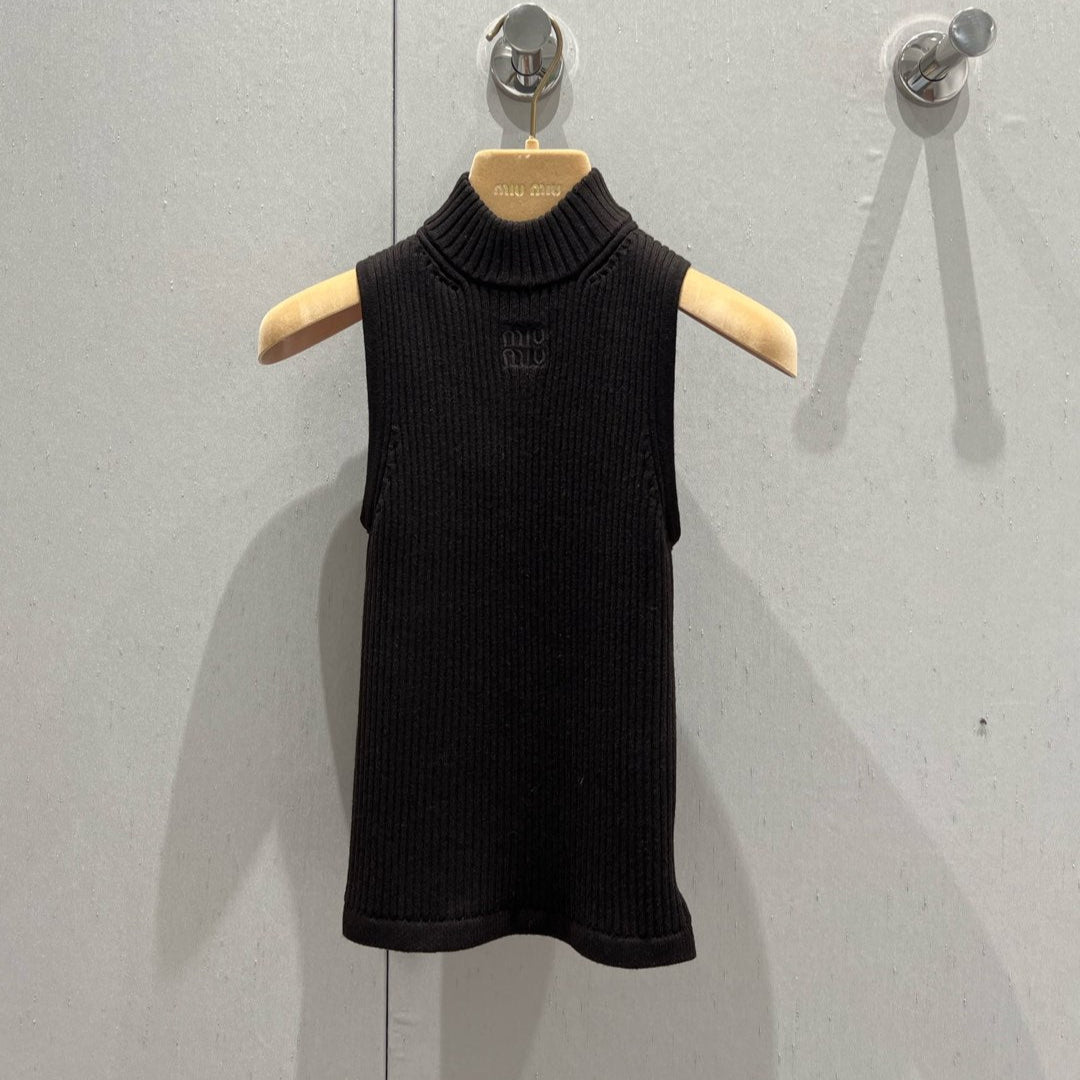 Miu Miu 2025 Round Neck Sleeveless Vest Brown Viscose