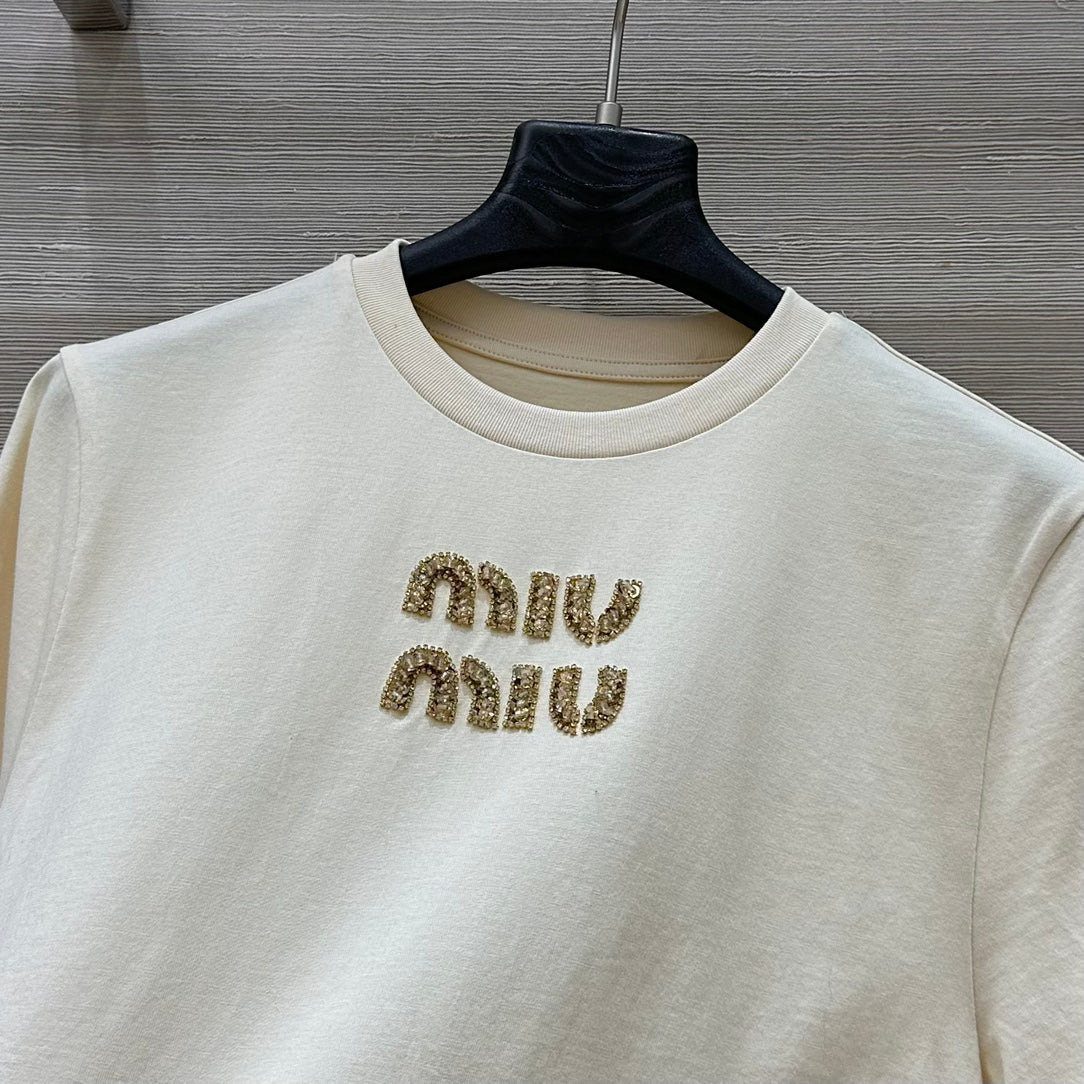 Miu Miu 25 Beaded Short Sleeve T-shirt White Red Cotton 210556