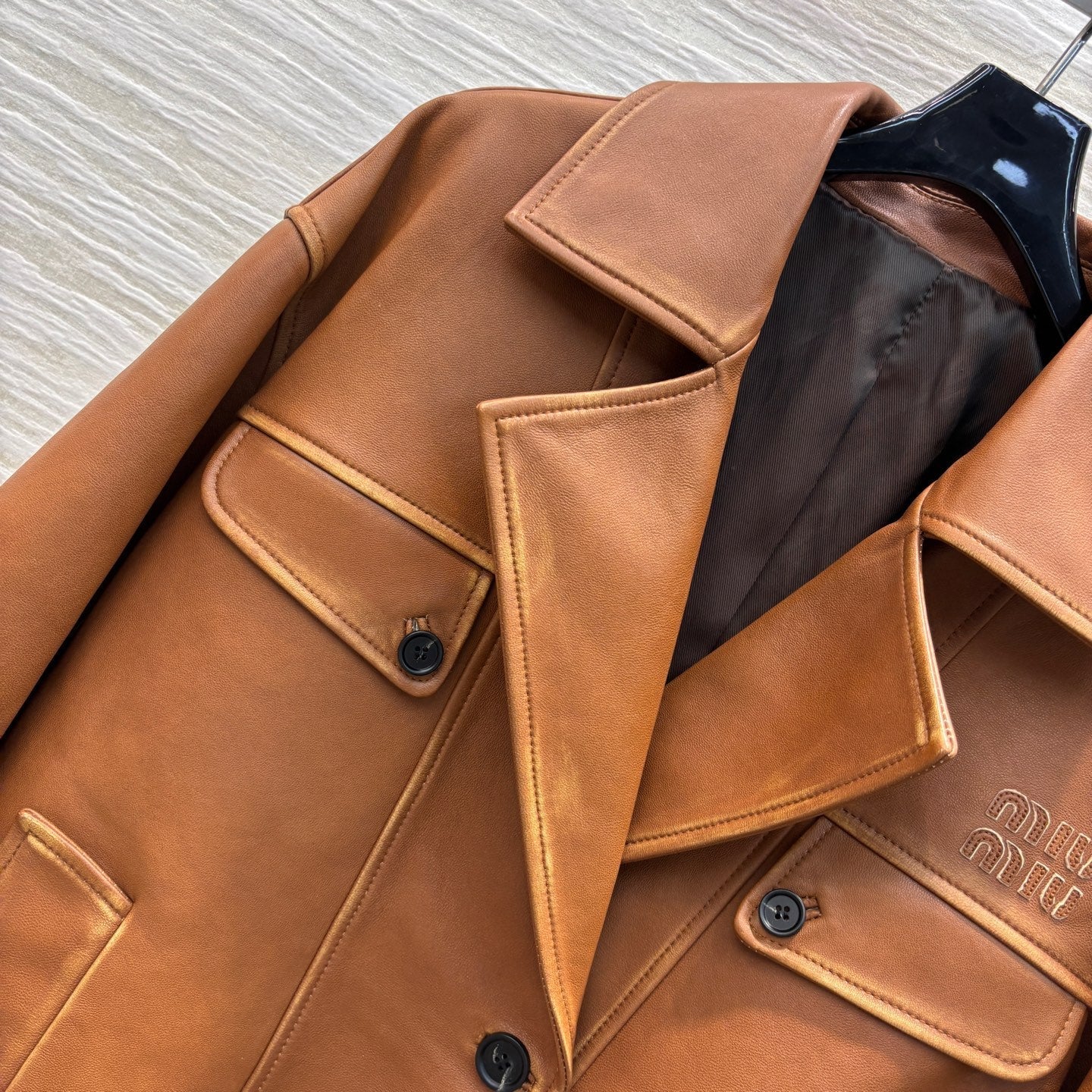 Miu Miu 25 Leather Jacket Brown Lambskin