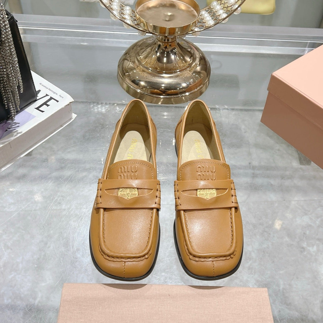 Miu Loafers Coin Shaped Thick Sole White With Brown Border Cowhide
