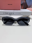 LOGO CAT EYE SUNGLASSES 513006 IN BLACK AND GREY CLEAR ACETATE WAVY FRAME