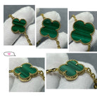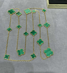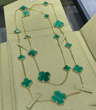 CLOVER 16 MOTIF MALACHITE PINK GOLD NECKLACE