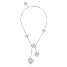 CLOVER 5 MOTIFS SILVER DIAMONDS NECKLACE