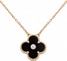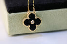 CLOVER NECKLACE GOLD DIAMOND ONYX