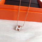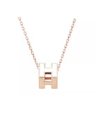 H WHITE SQUARE PINK GOLD NECKLACE