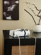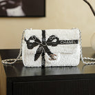 CC 2025 Bow Flap Bag White Black Sequin 308598