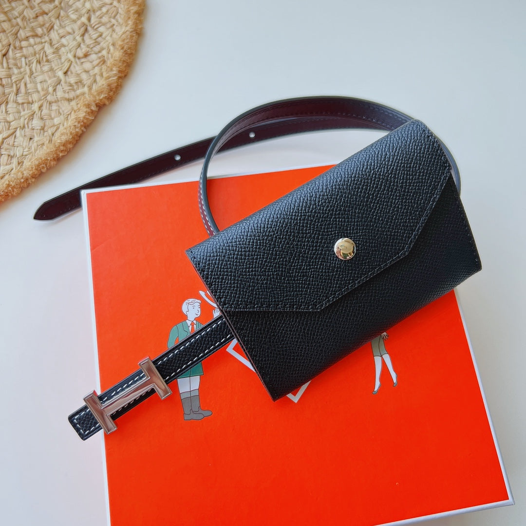 focus belt 13mm with kelly pocket black epsom silver buckle