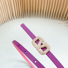 VL Belt 8mm Buckle Gold Diamond Leather Pink Purple
