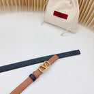 Vlogo Buckle Water Wave Gold Copper Glossy Brown Black Leather 20mm Belt