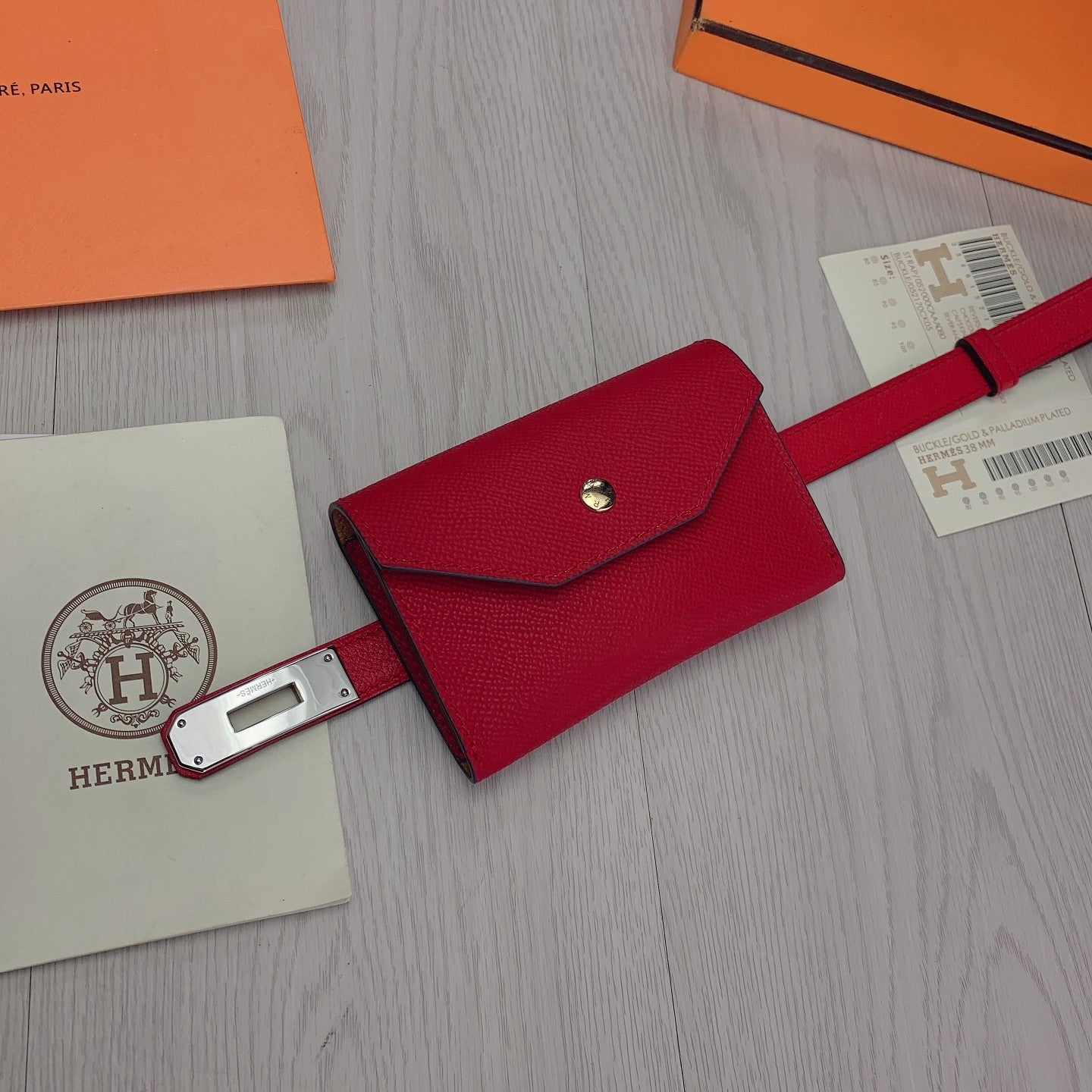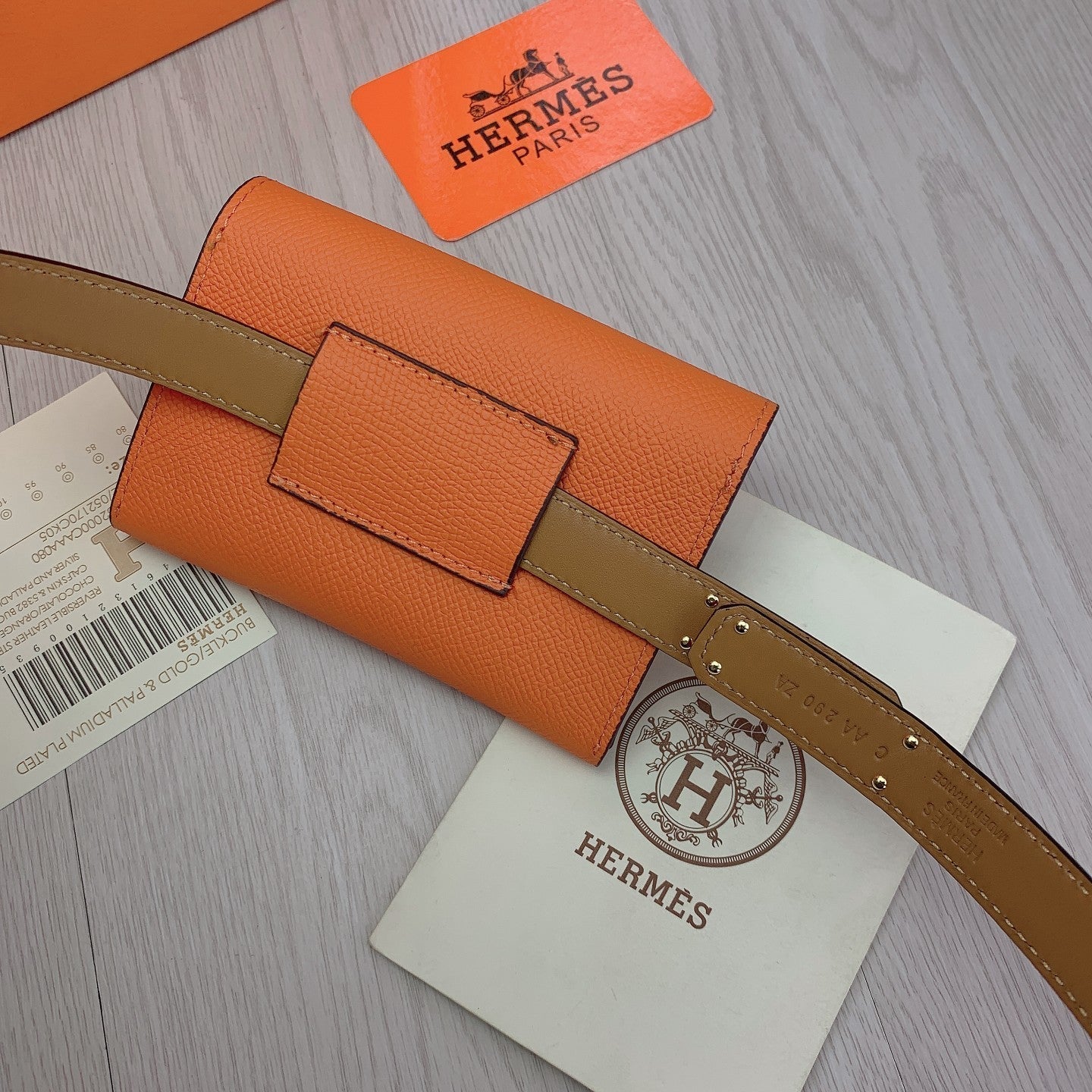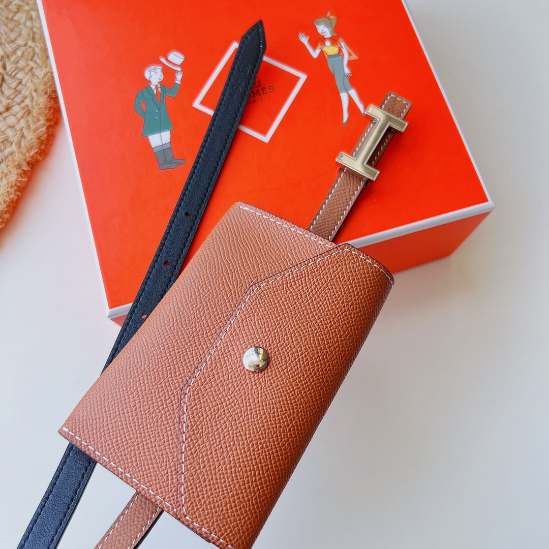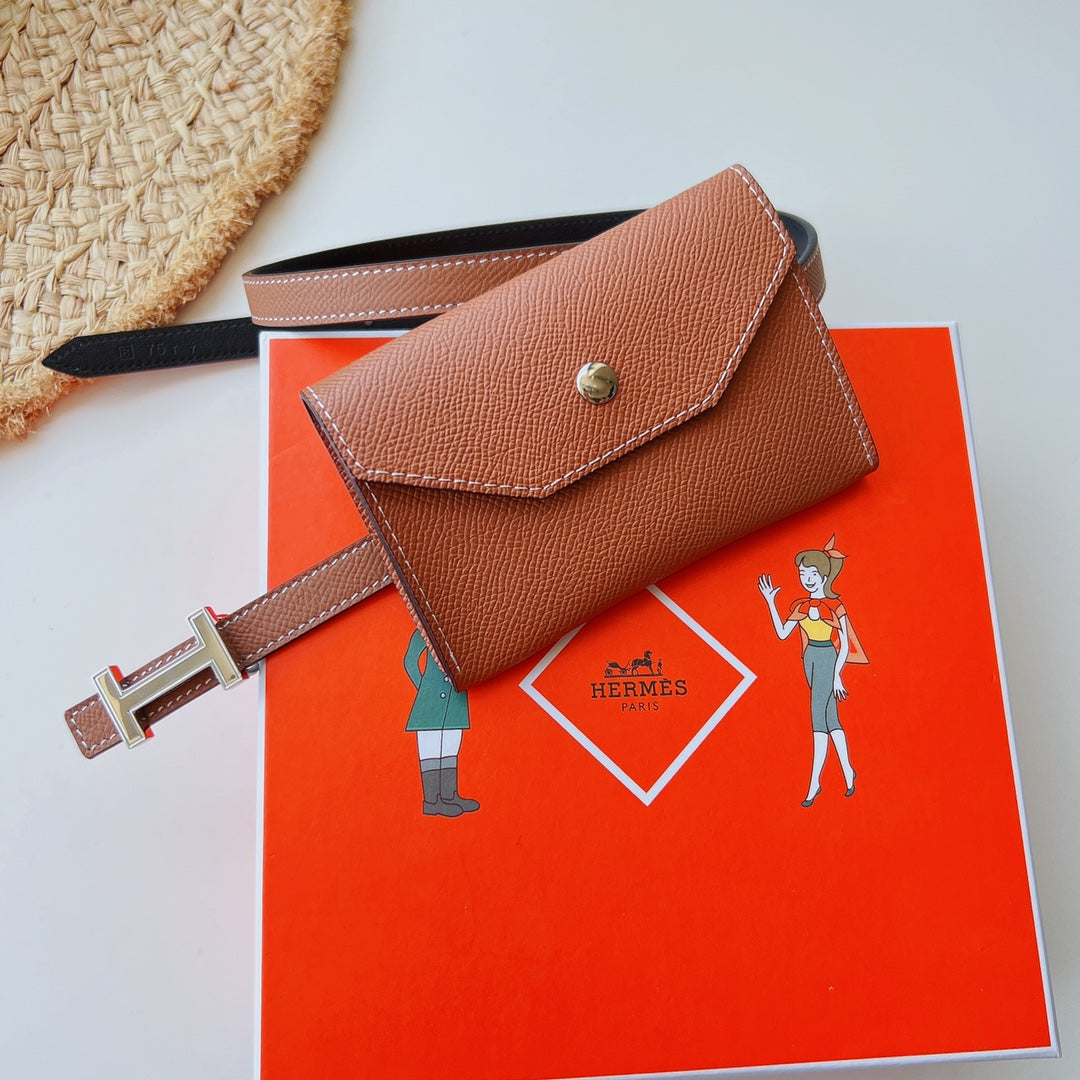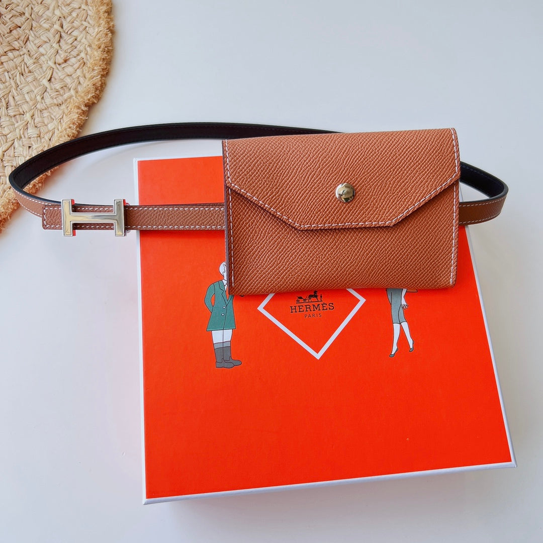 hm kelly belt 18mm with pocket orange calfskin