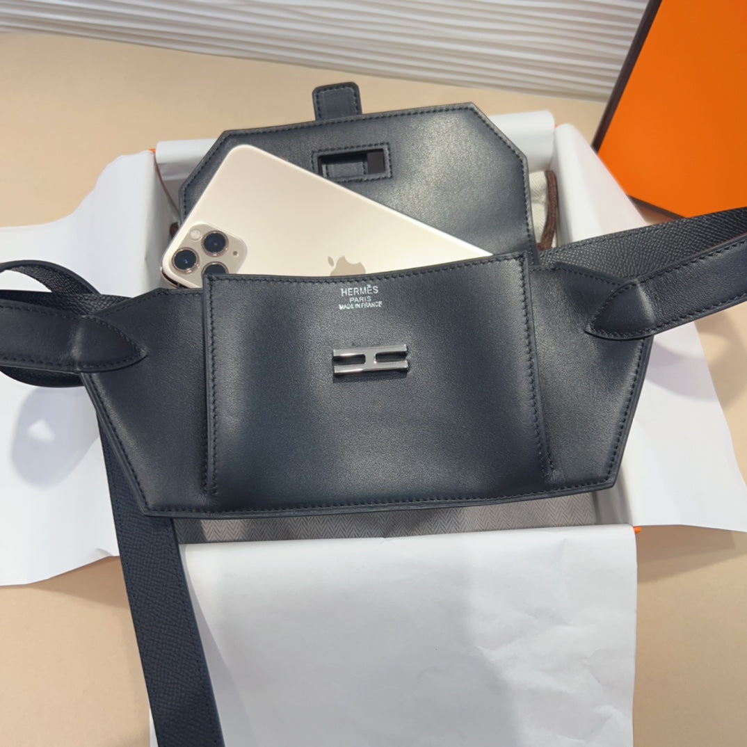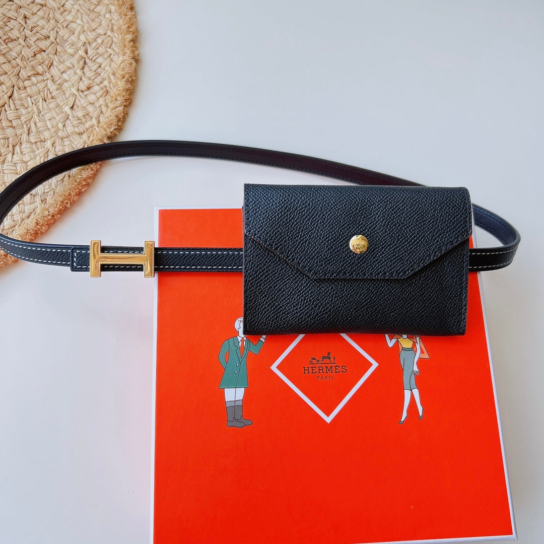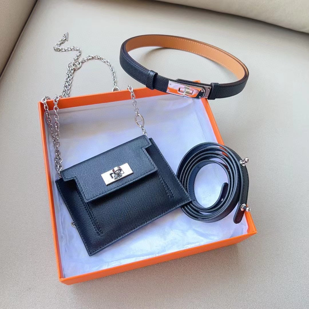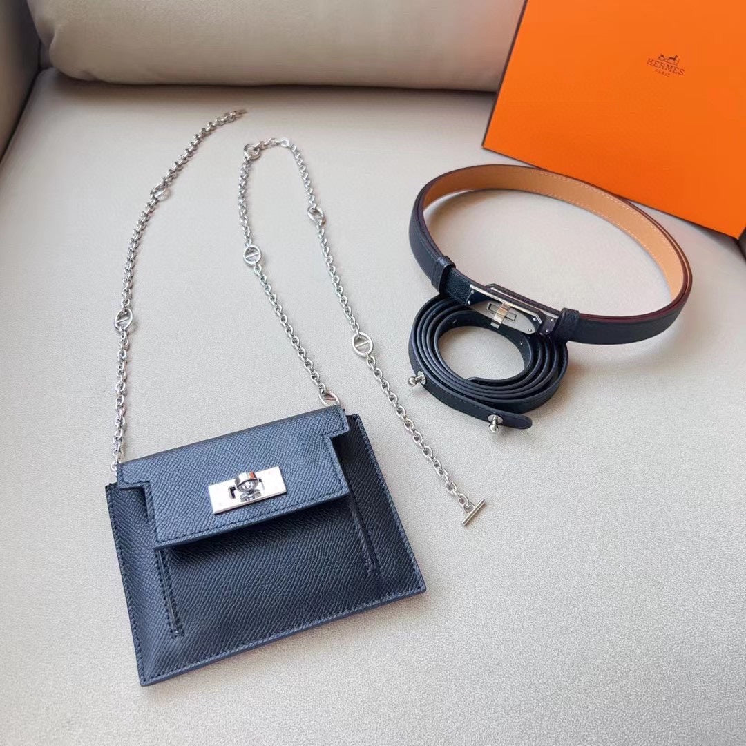 hm kelly belt 18mm with pocket black calfskin silver buckle
