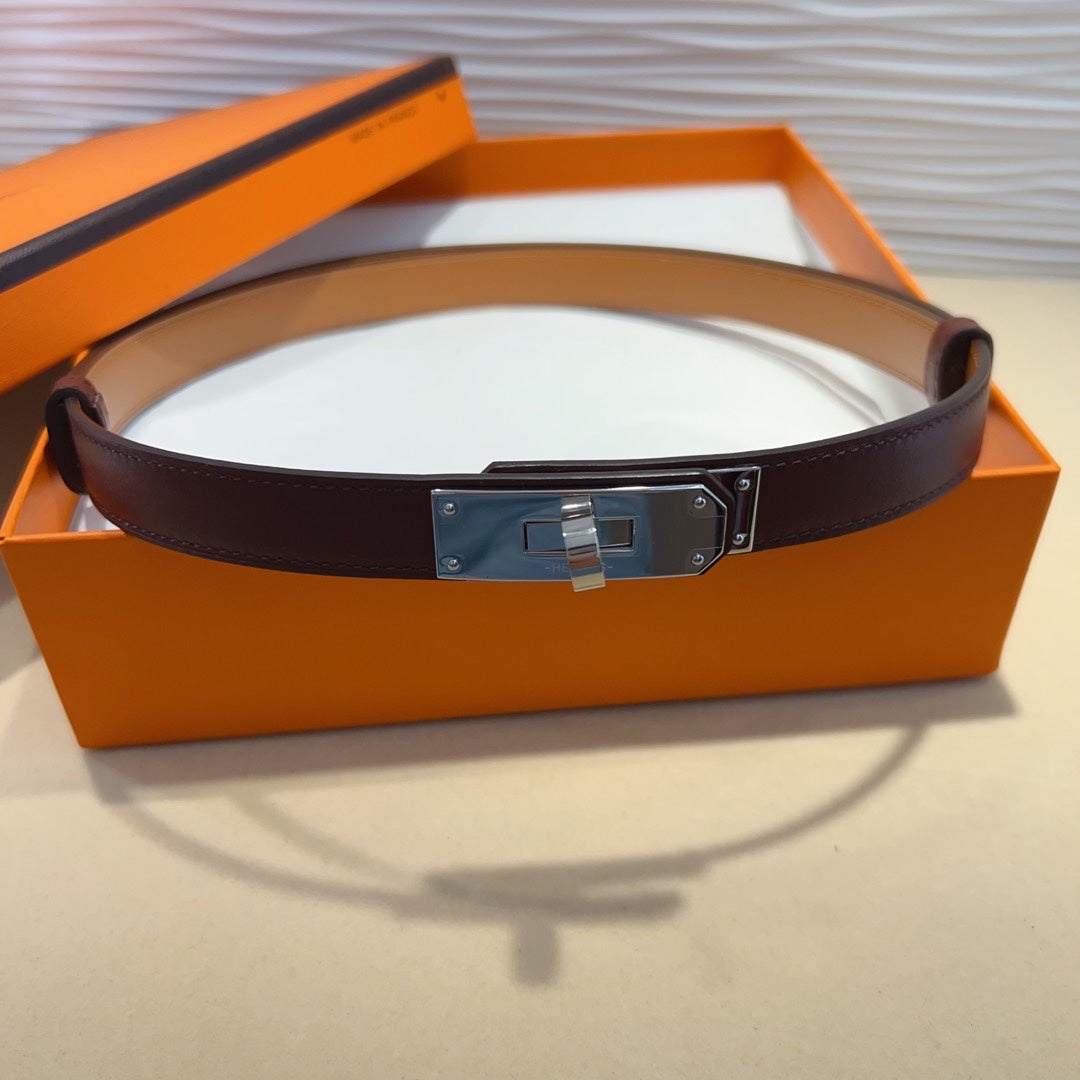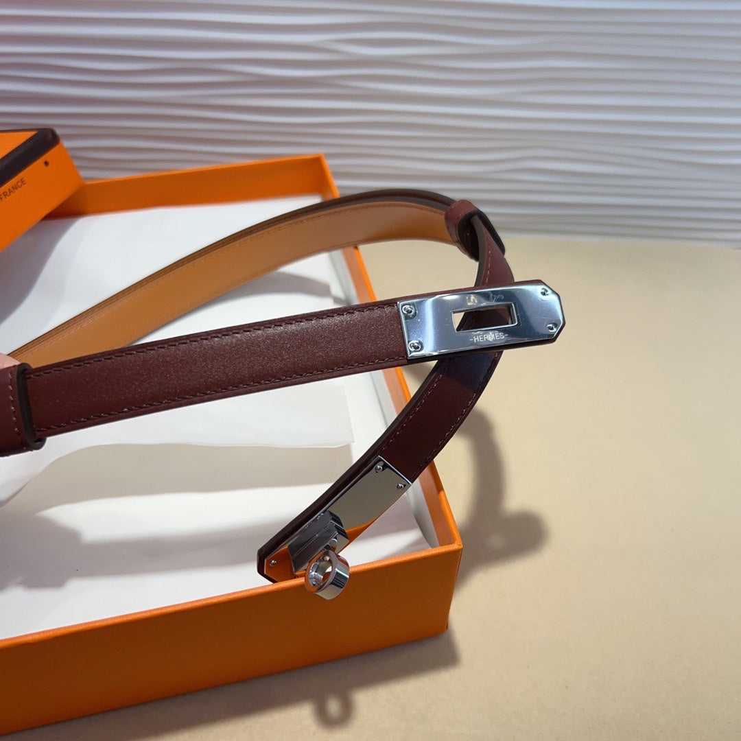 hm kelly belt 18mm burgundy calfskin silver buckle