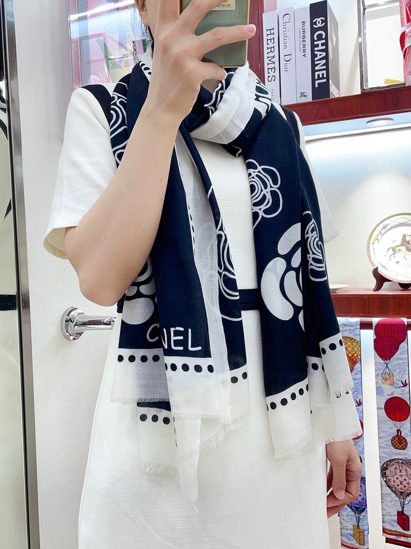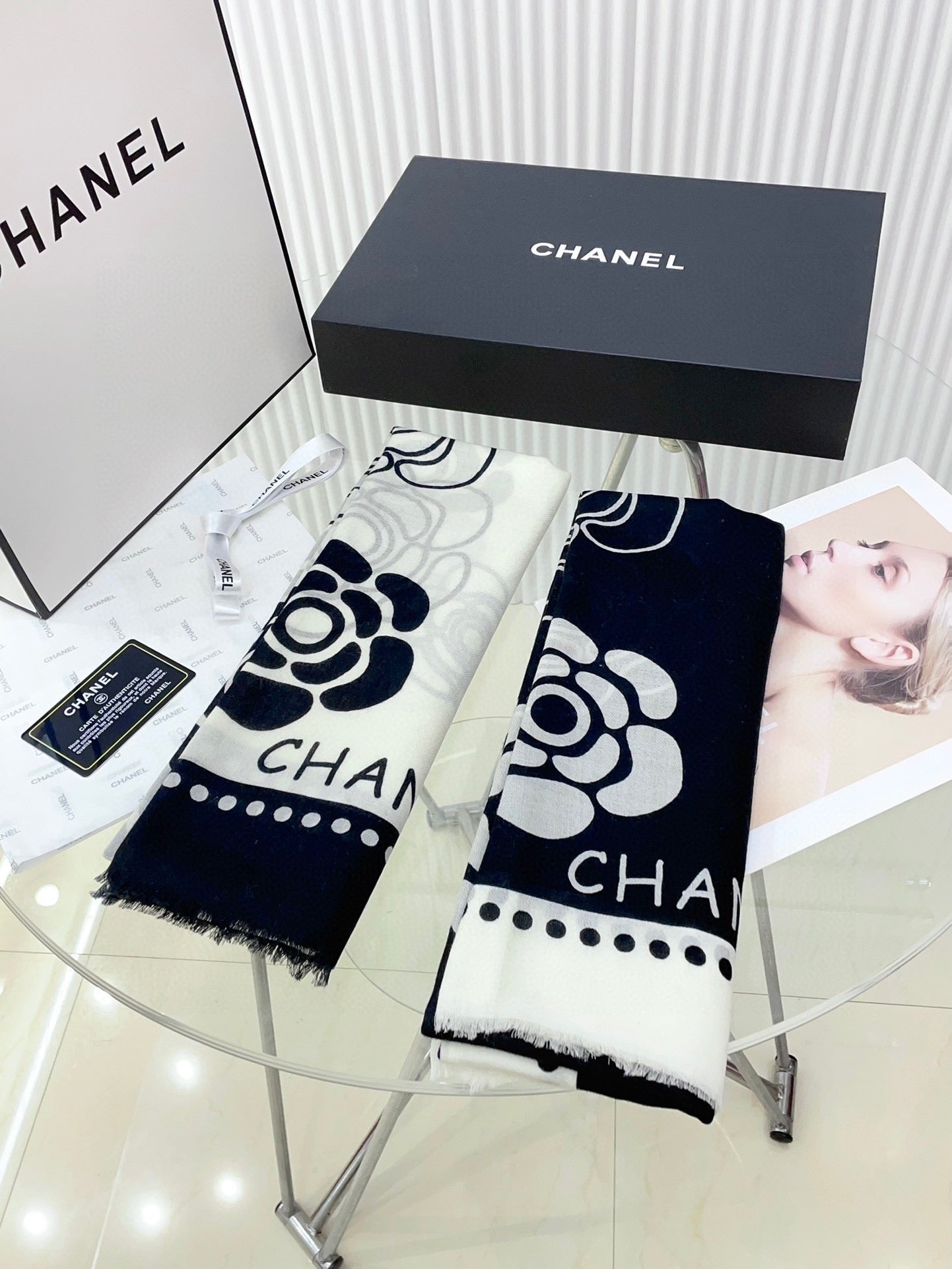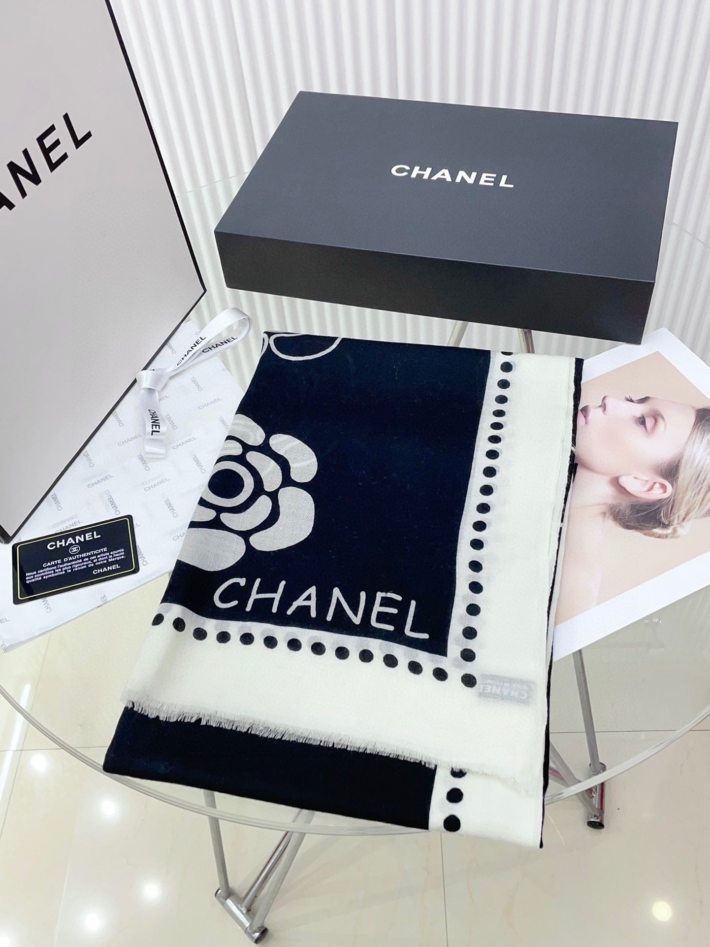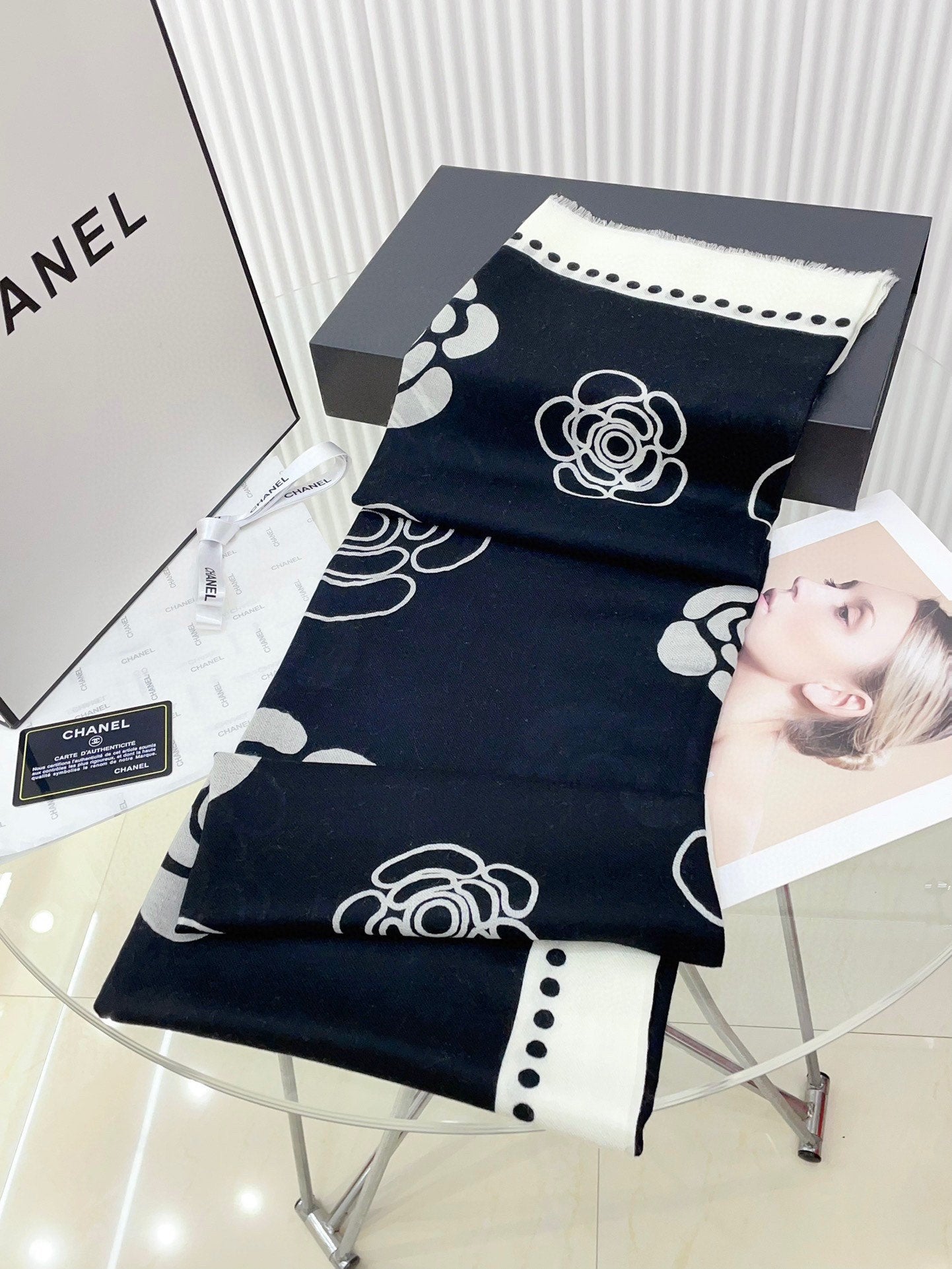 CC Scarf 190 CM In Black Mix White Cashmere 407269