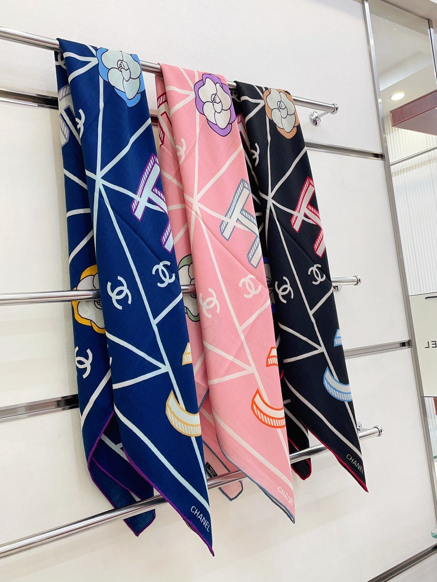 CC Square Scarf 140 CM In Dark Blue Colorful Cashmere Silk 418207