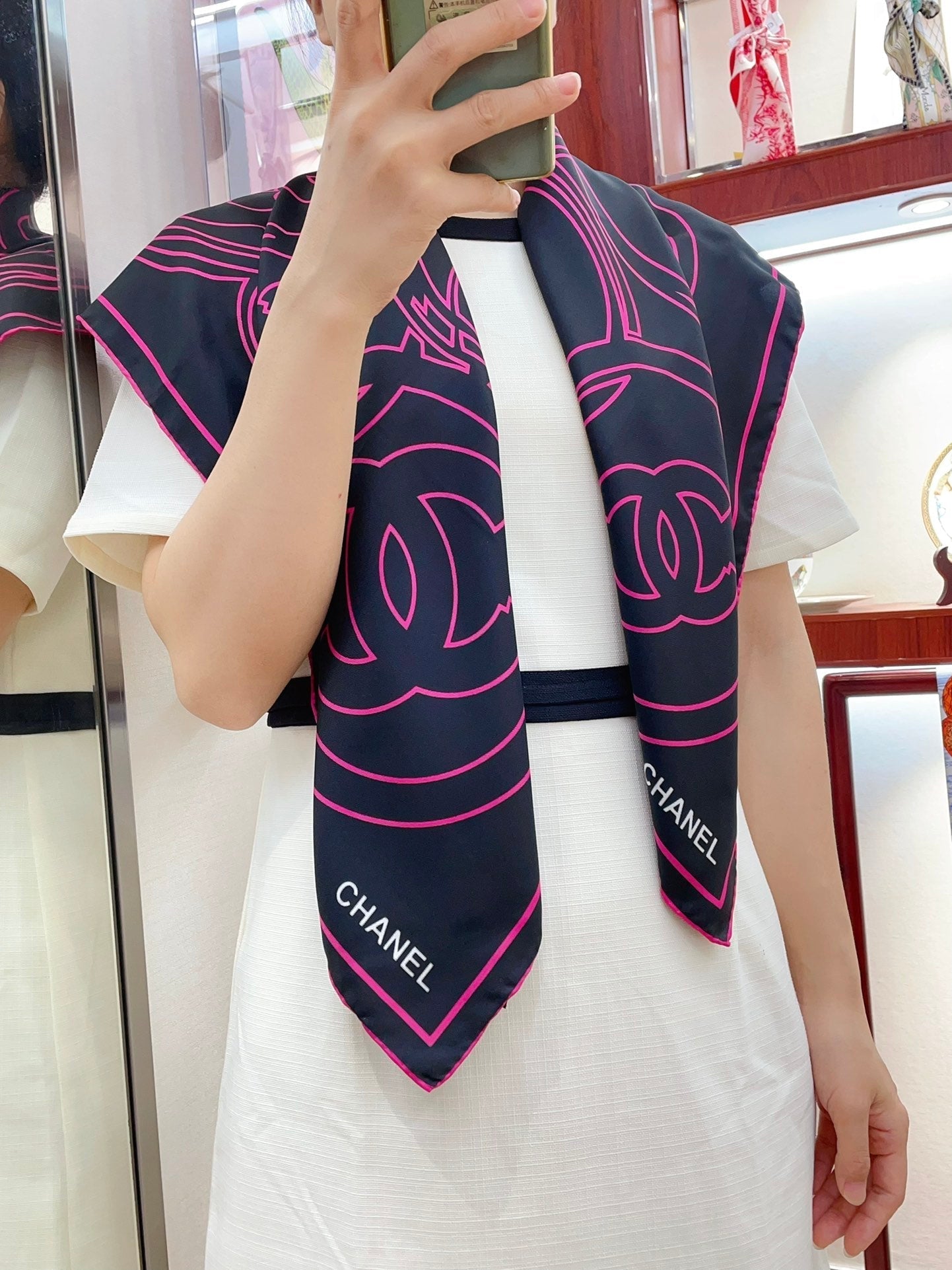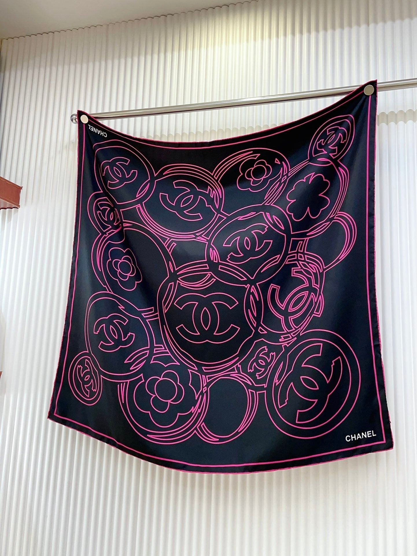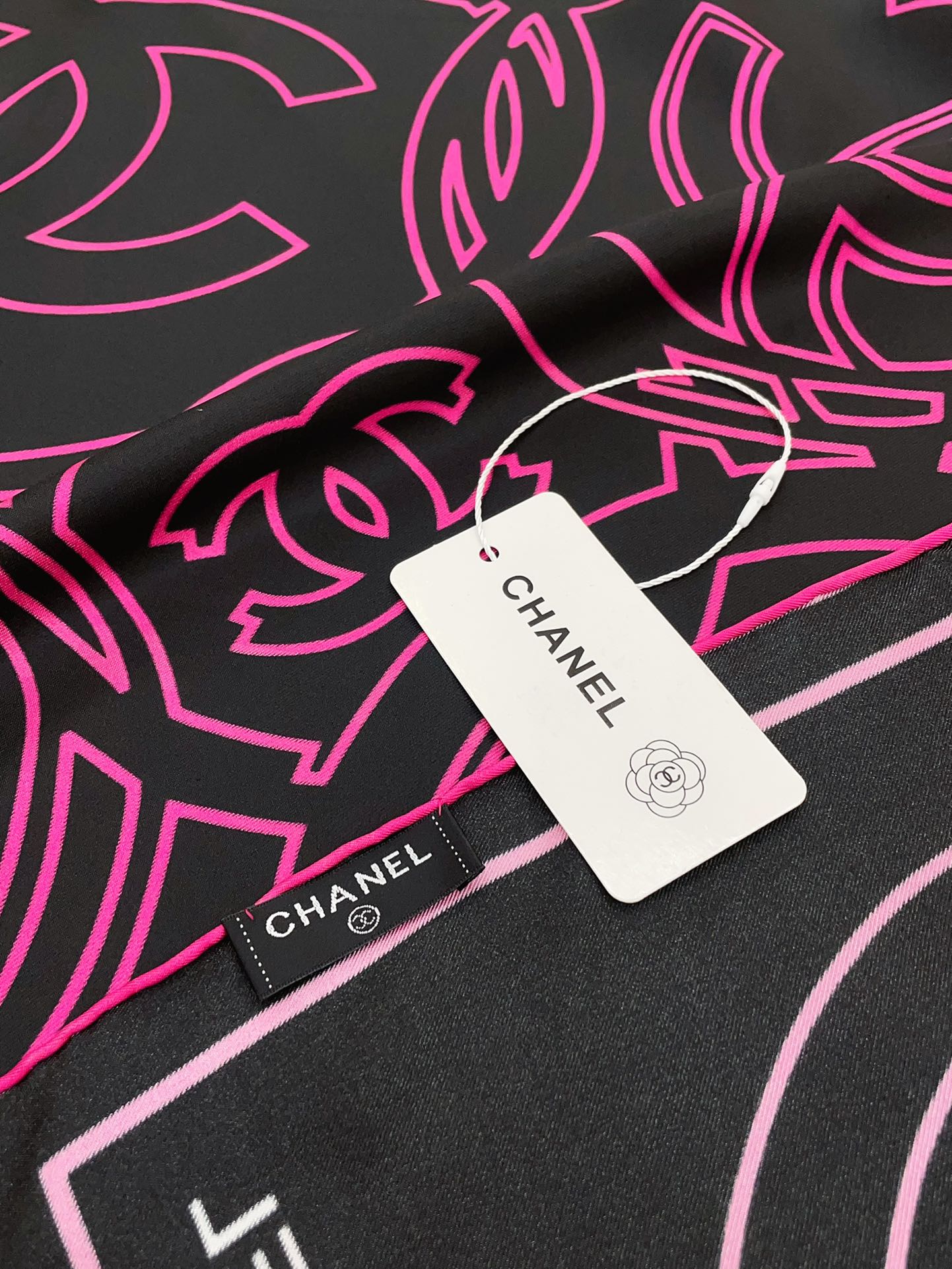 CC Square Scarf 90 CM In Black Mix Pink Silk Twill 187438