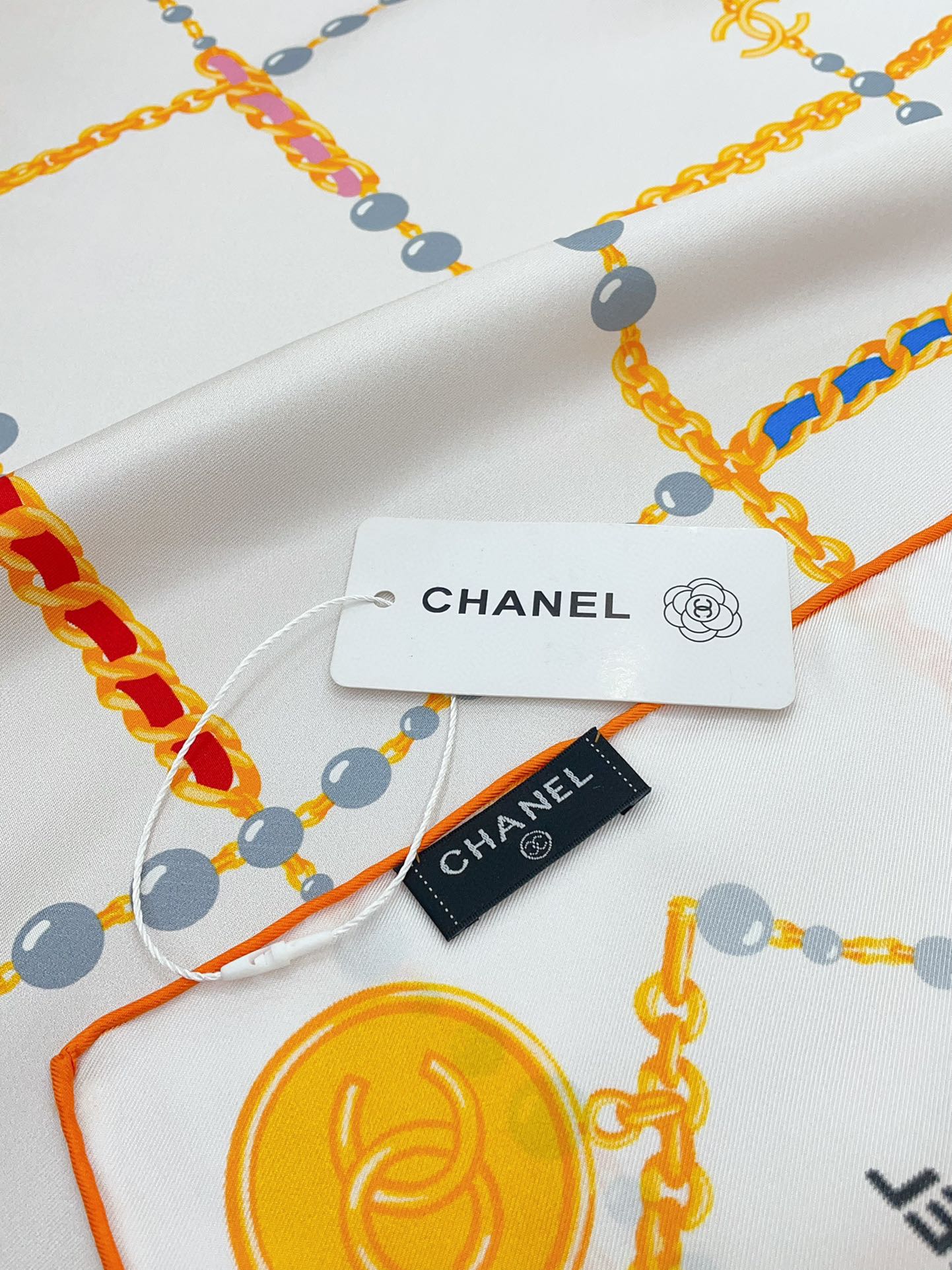 CC Square Scarf 90 CM In White Mix Yellow Silk Twill 176345