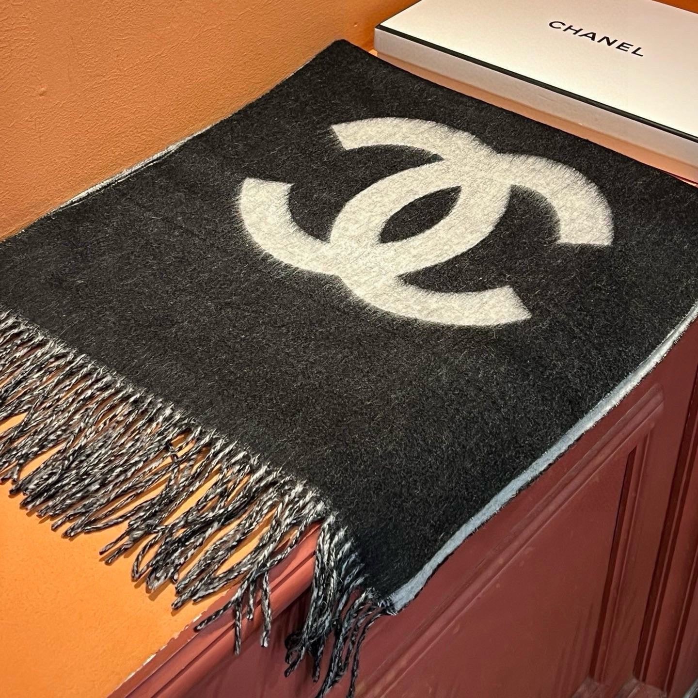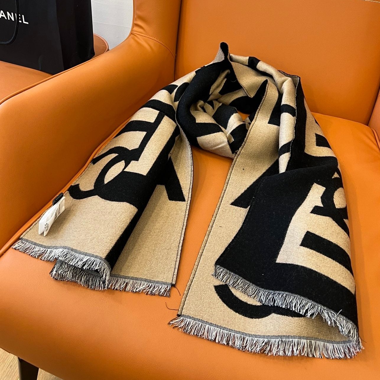 CC Scarf 200 CM In Black Mix Beige Silk Cashmere 324746