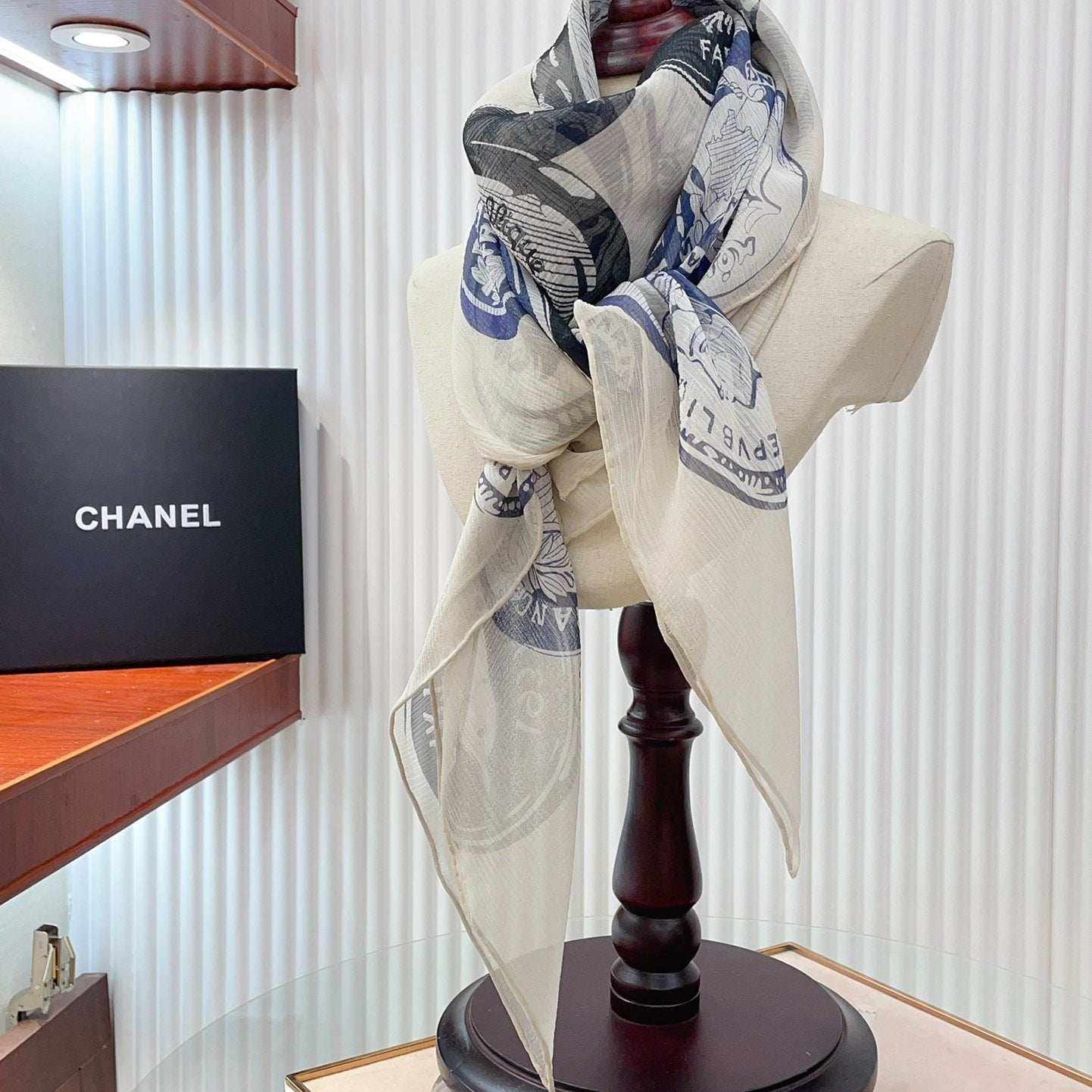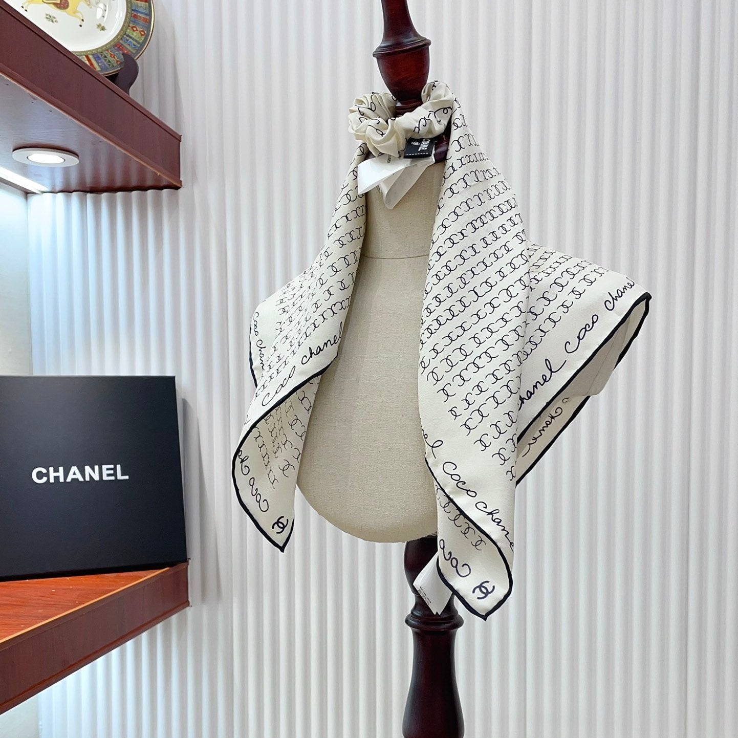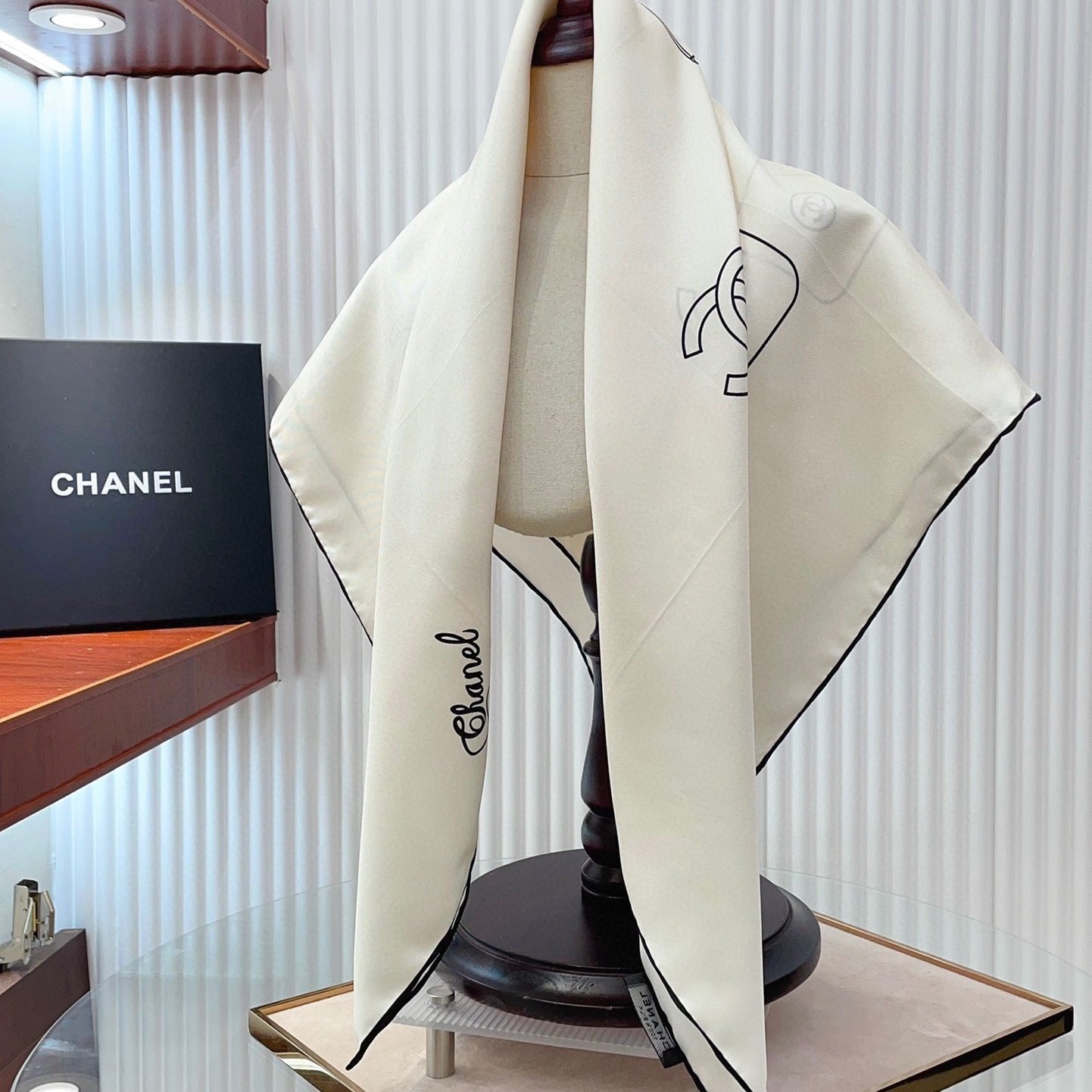 CC Square Scarf 110 CM In White Black Shunyu Georgette Silk 196210