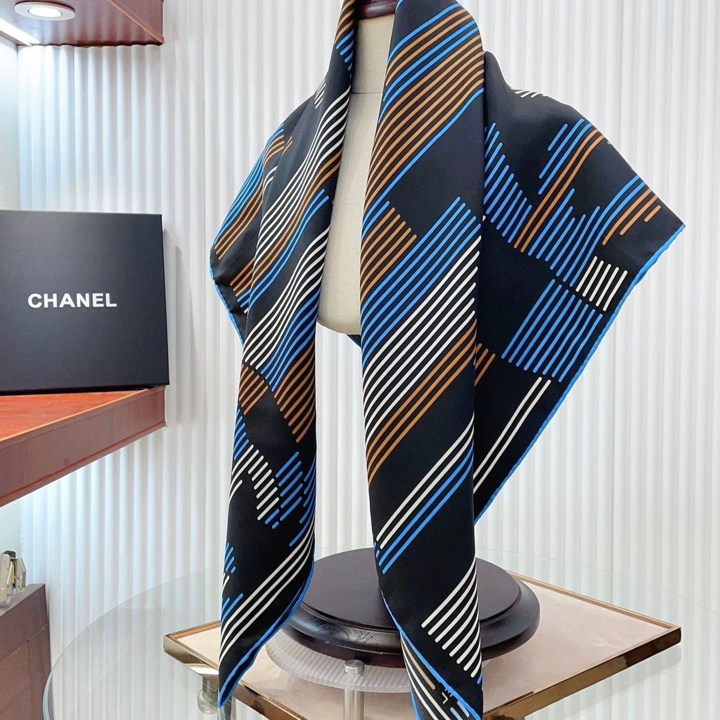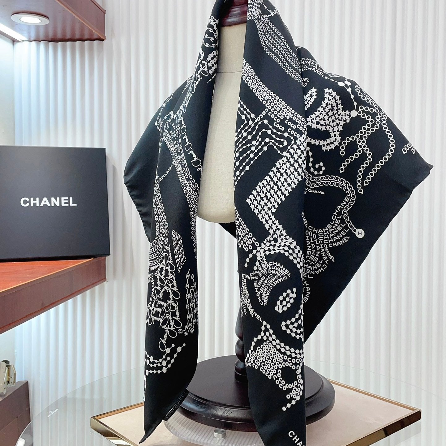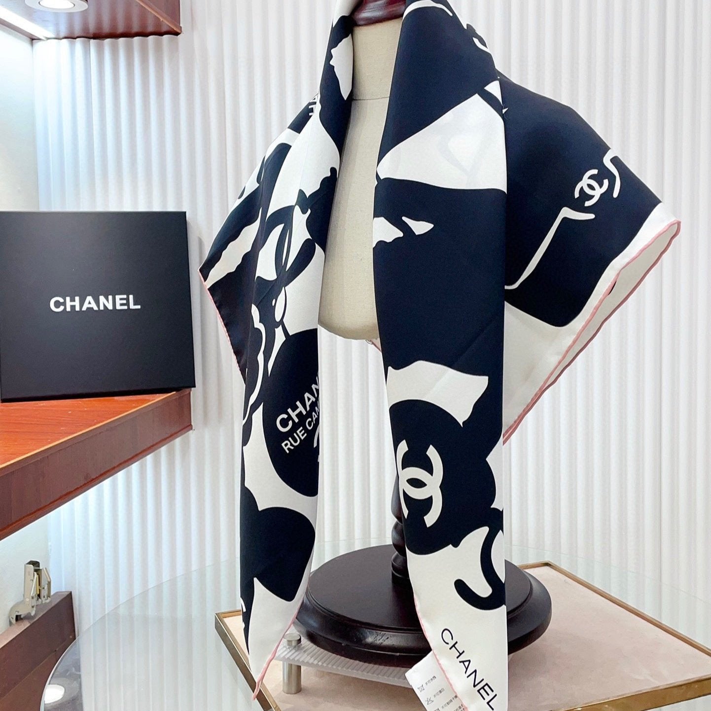 CC Square Scarf 90 CM In Black Mix White Silk 305181