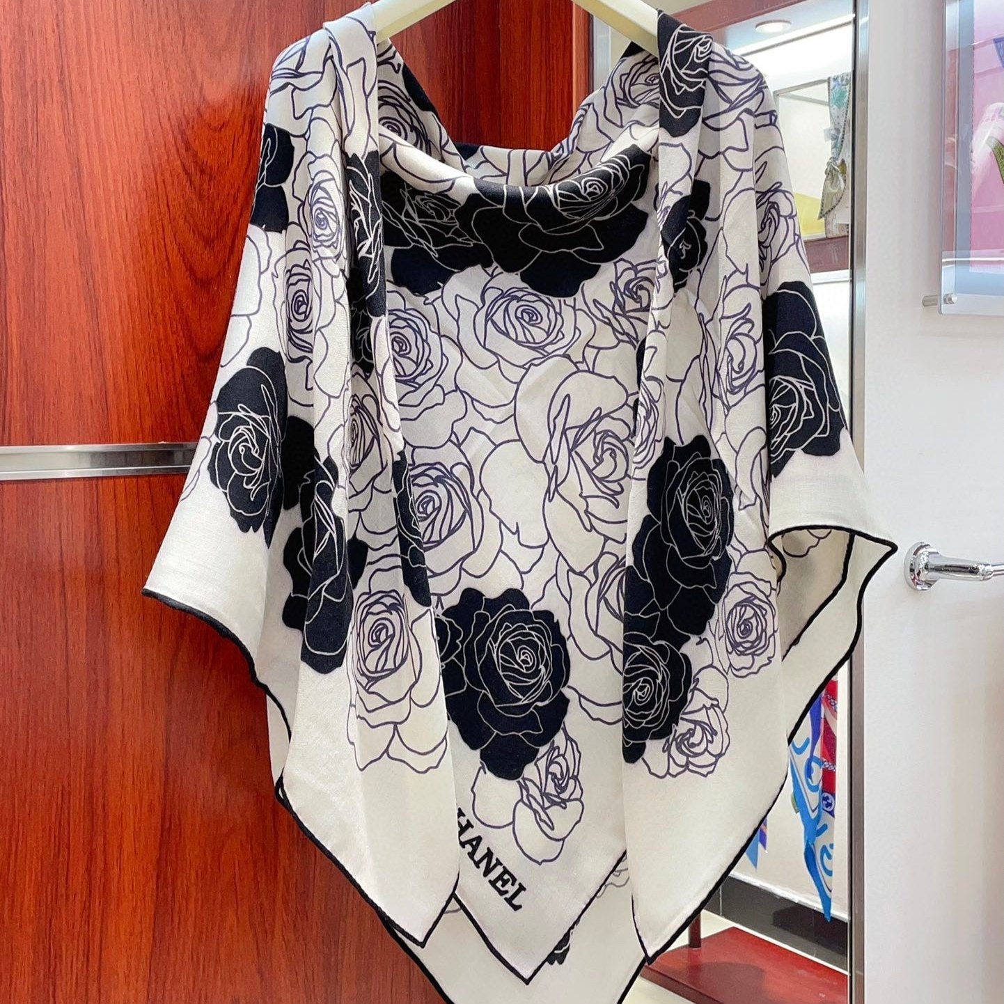CC Square Scarf 140 CM In Black Mix White Cashmere 319061