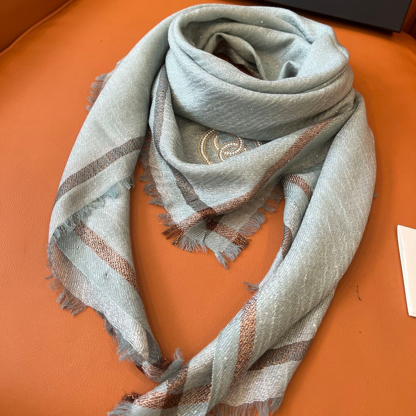 CC Square Scarf 100 CM In Grey Blue Cashmere And Wool Mix Sequin Fabric 345993