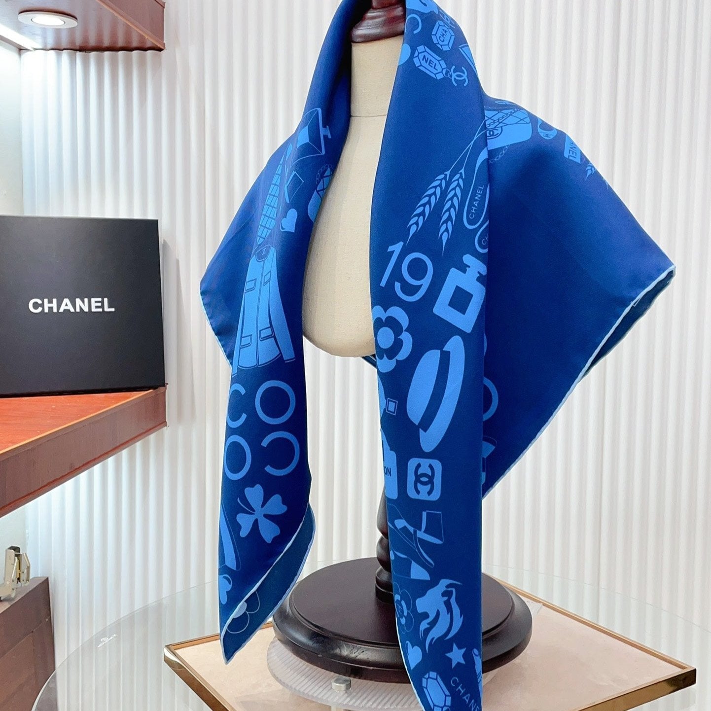 CC Square Scarf 90 CM In Blue Silk Twill 211102