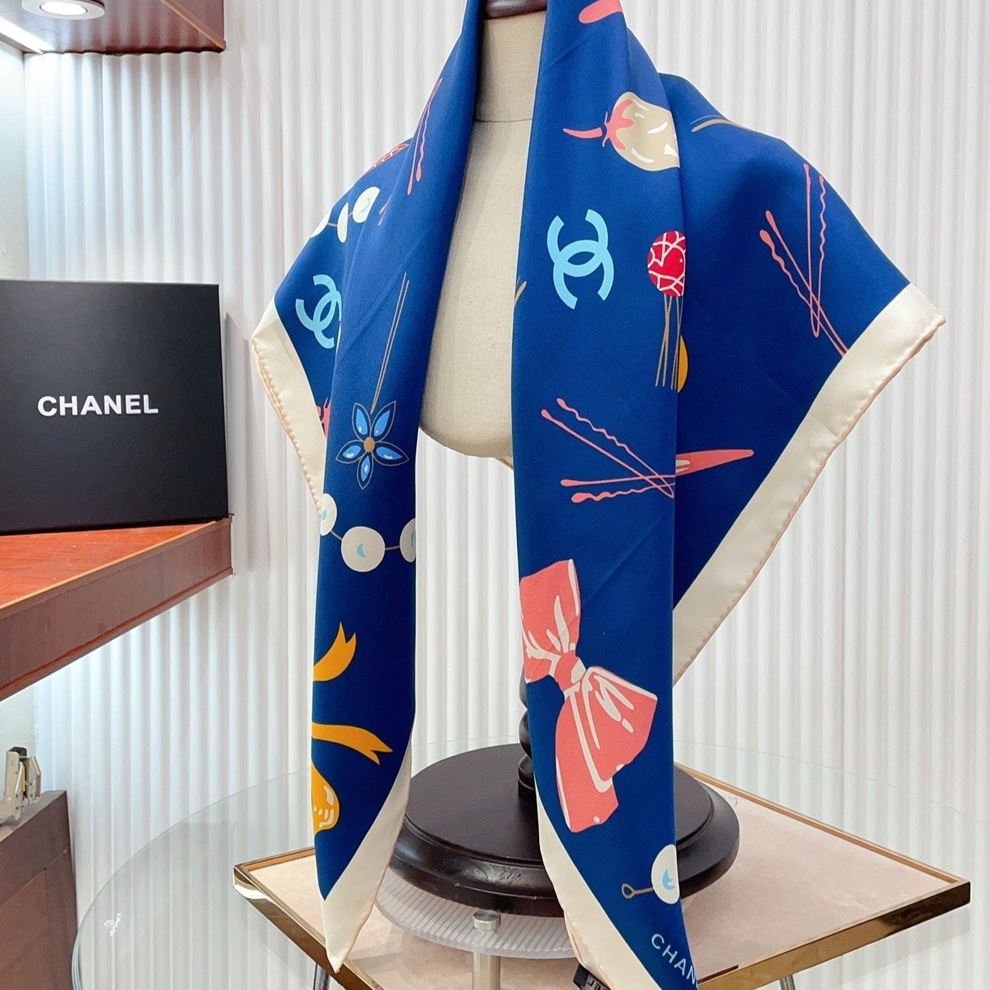 CC Square Scarf 90 CM In Blue Colorful Silk Twill 211097