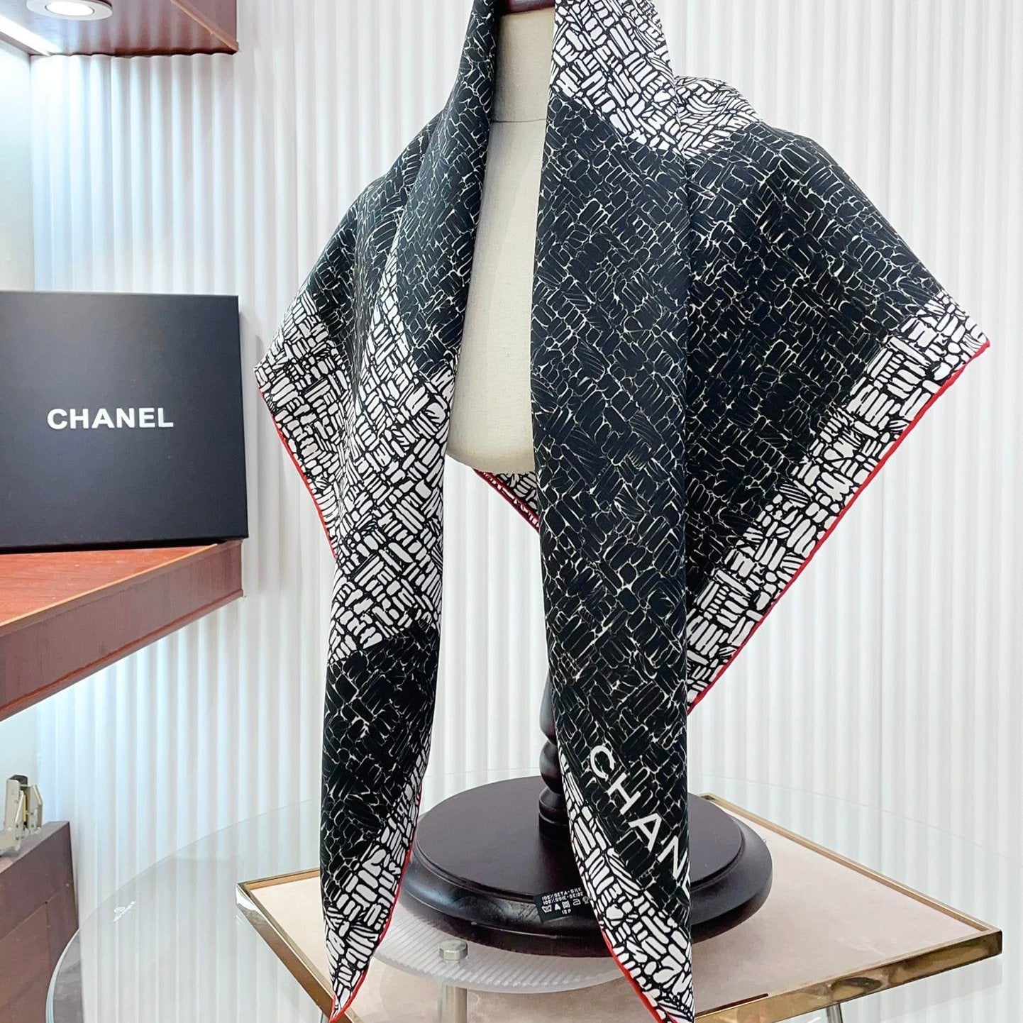CC Square Scarf 140 CM In Black Mix White Red Cashmere Silk 252308