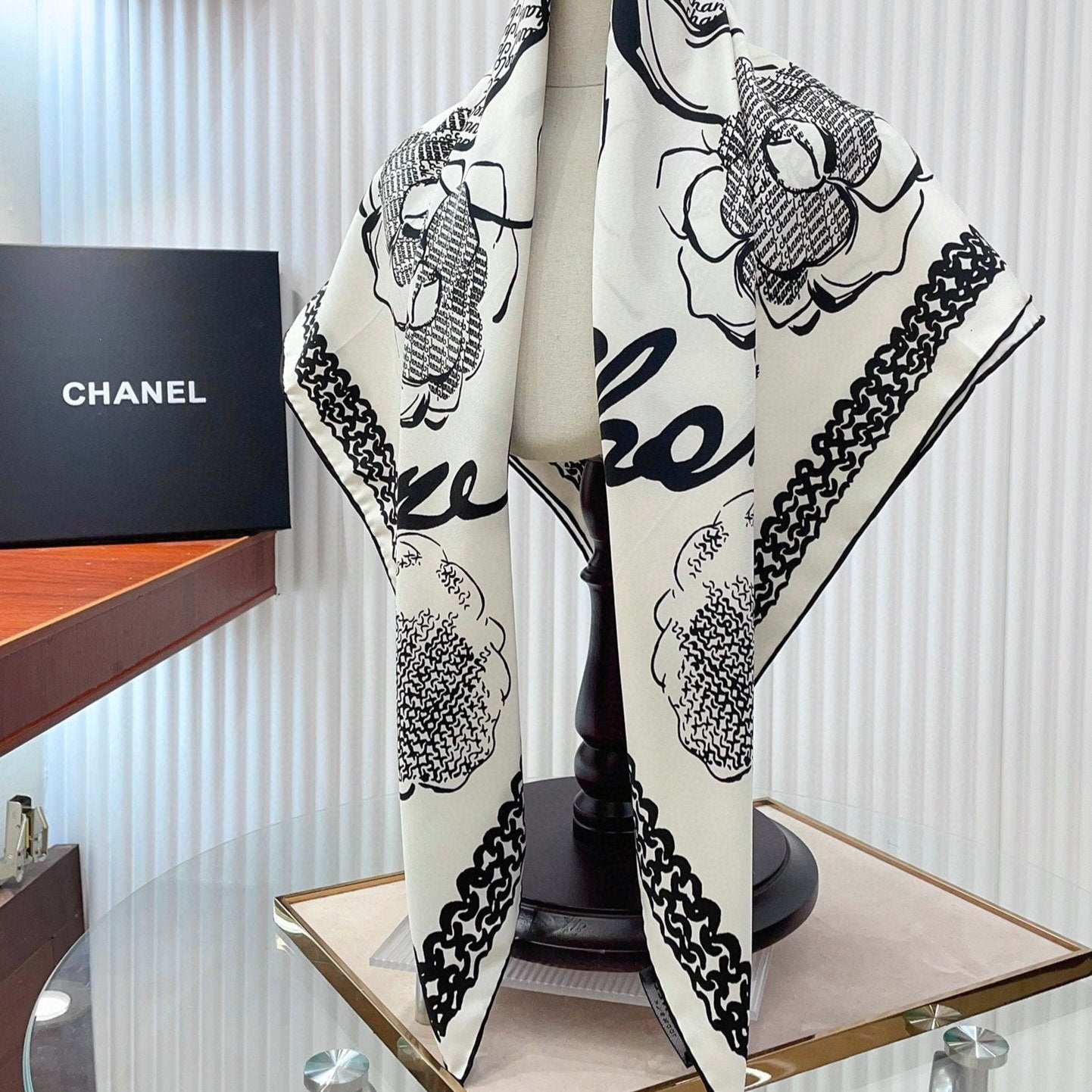 CC Square Scarf 90 CM In Black Mix White Silk Twill 350415