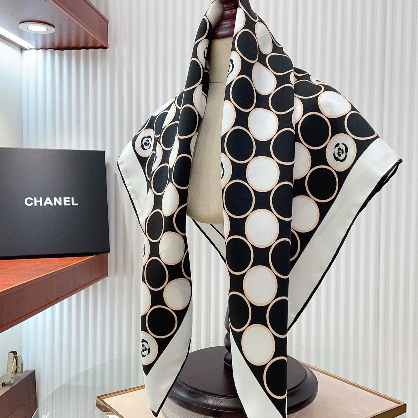 CC Square Scarf 90 CM In Black Mix White Silk Twill 218098