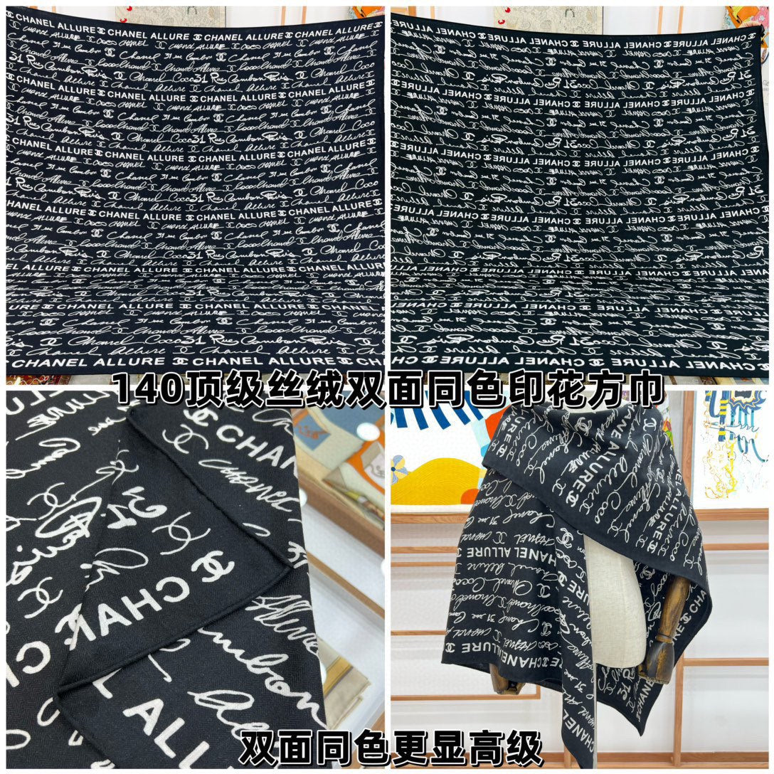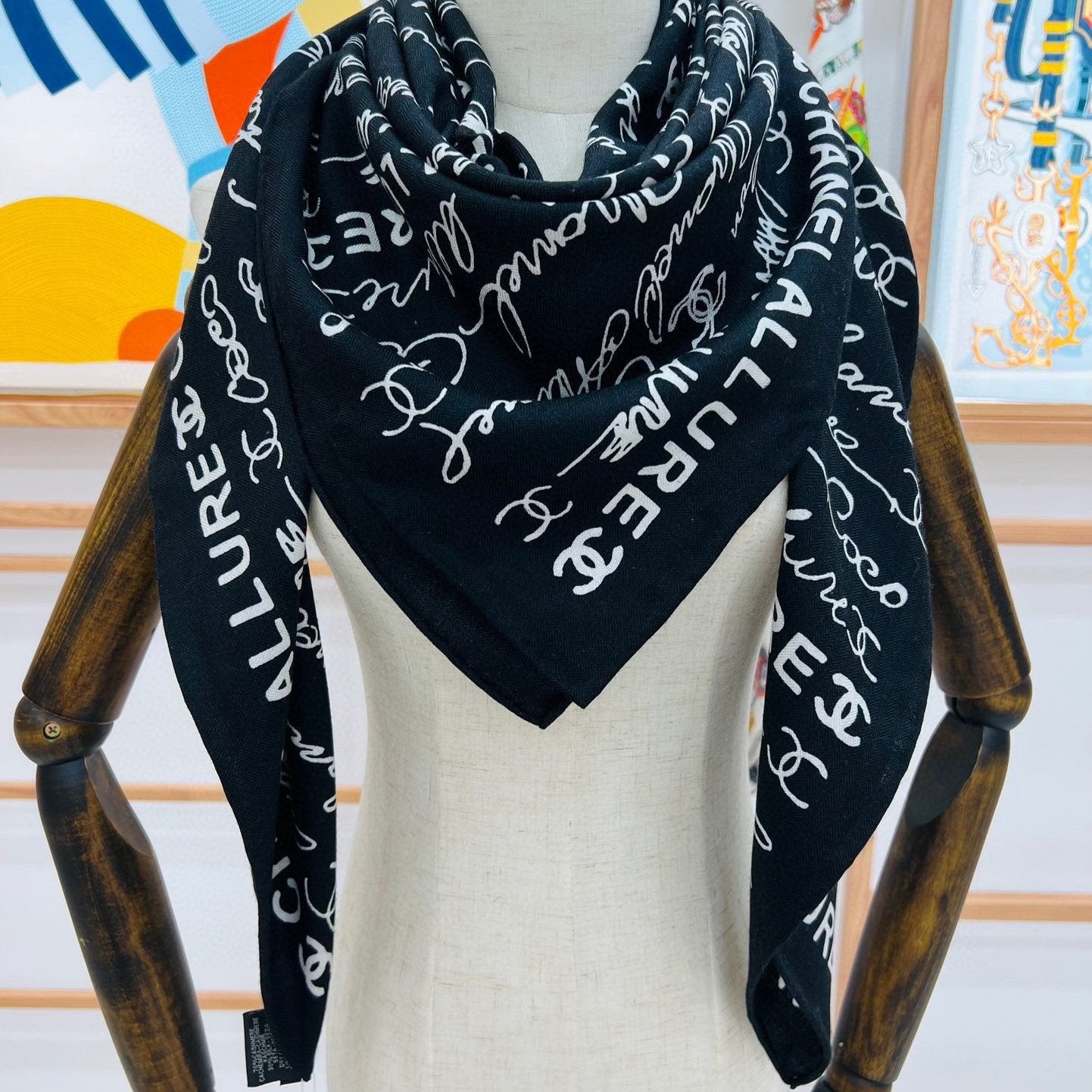 CC Square Scarf 140 CM In Black With White Text Cashmere And Silk 286378
