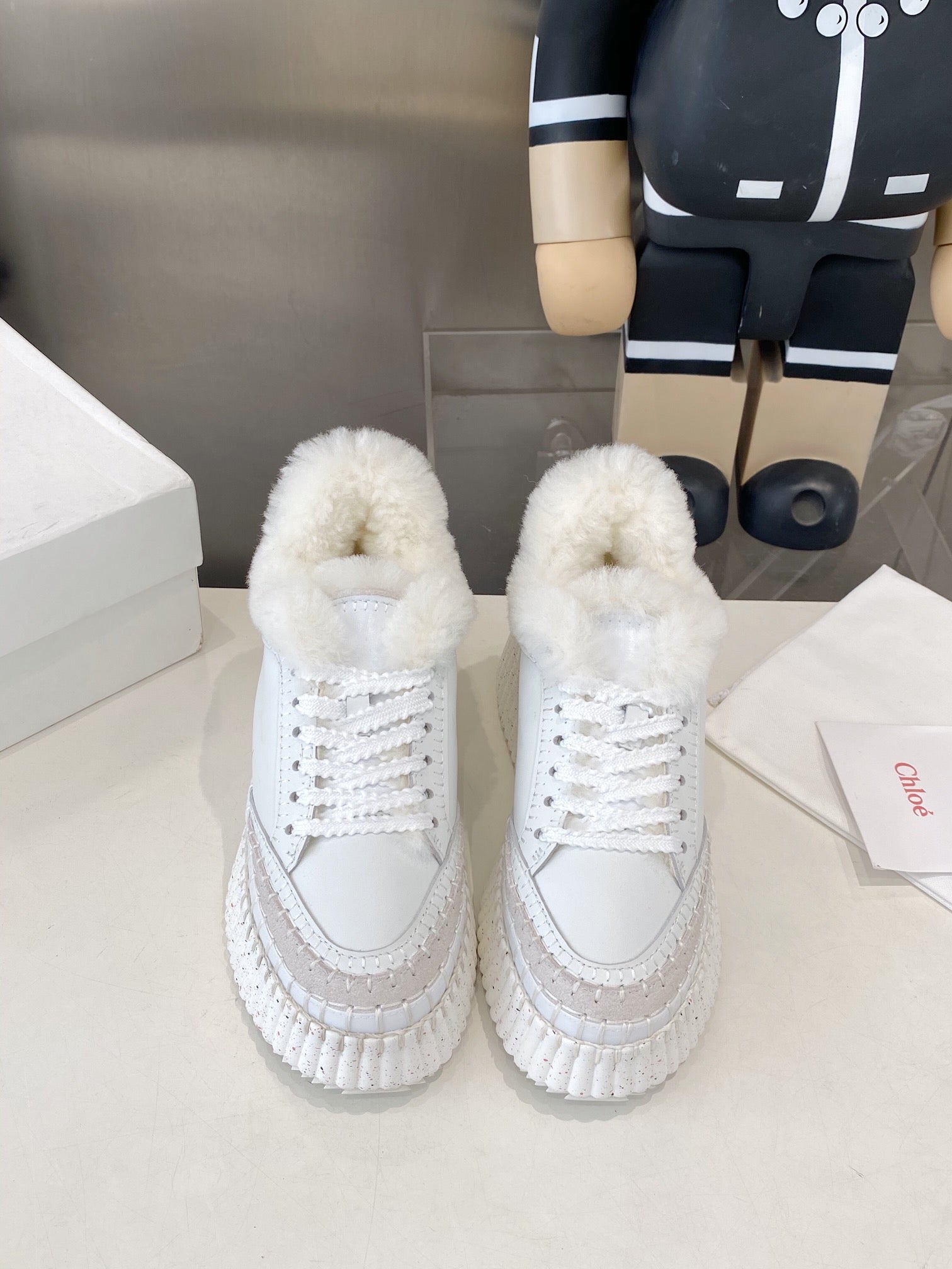 Chloe Nama Sneaker White Cowhide Wool 531607
