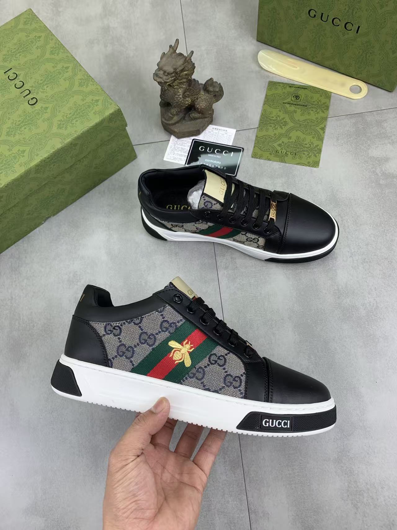 GG 25 Men's ACE Sneaker Black Sheepskin Canvas
