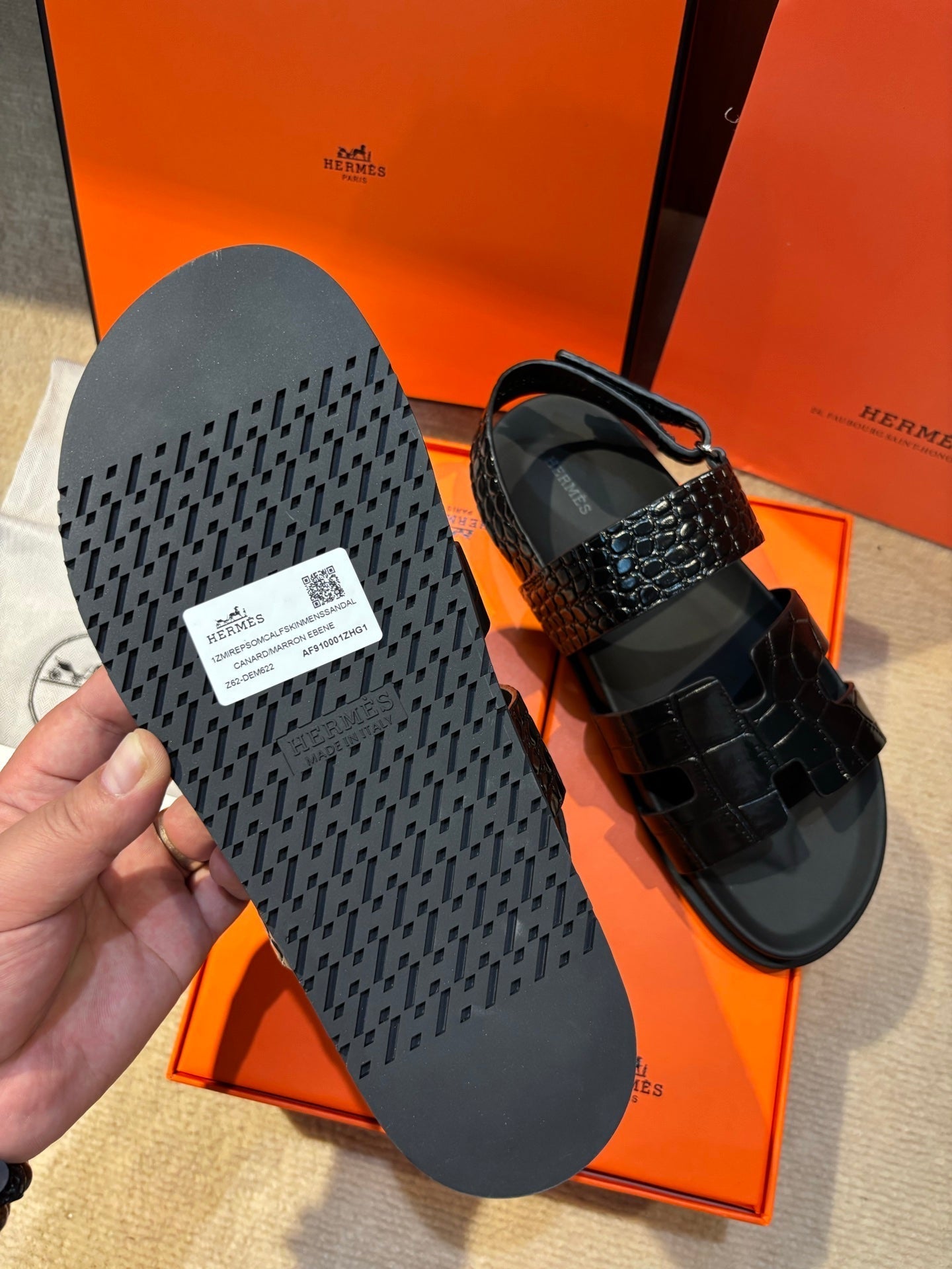 HM Men's 25 Genius Sandals Black Calfskin 673762