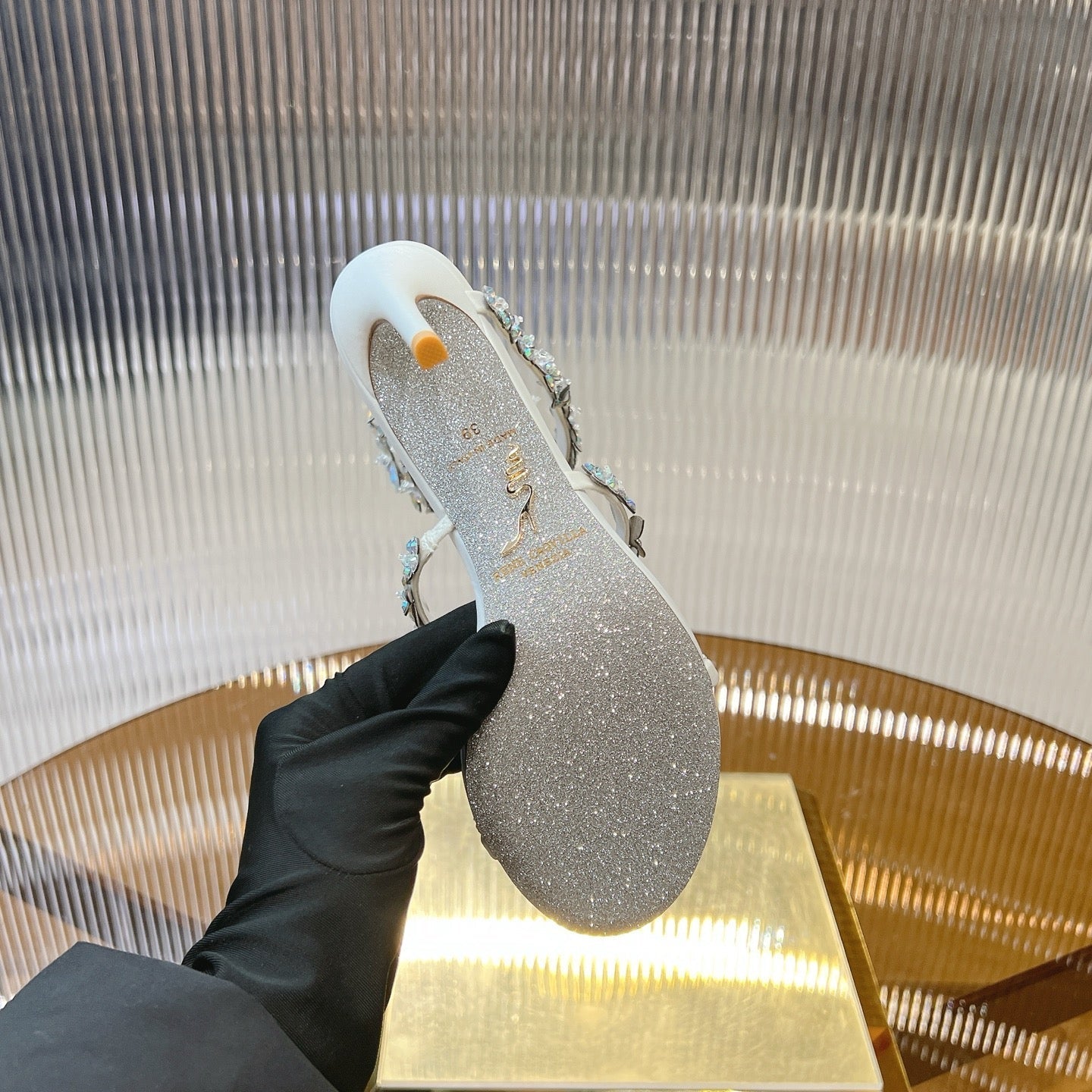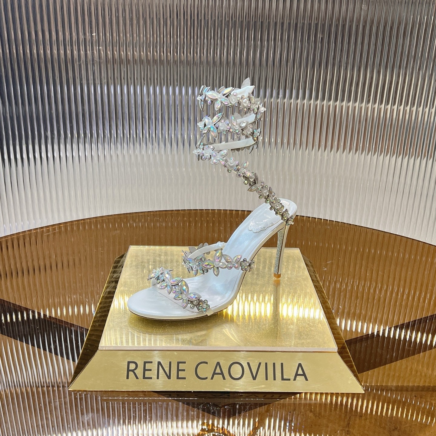 RC 25C Butterfly Flower High Heels Sandals White Sheepskin Rhinestone 281975