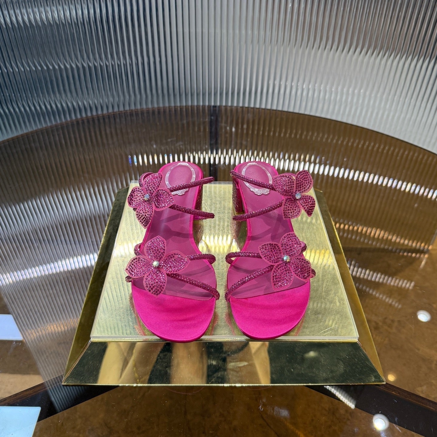 RC 25C Flower Sandals Pink Sheepskin Rhinestones 314822