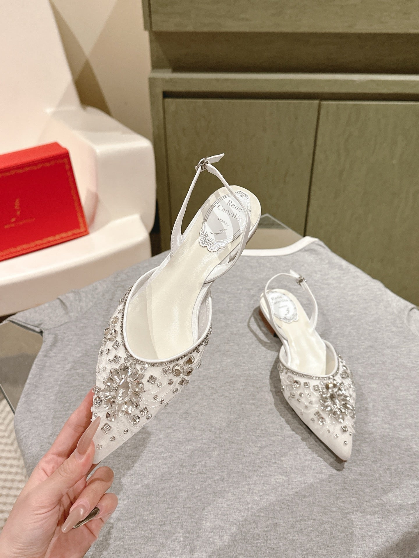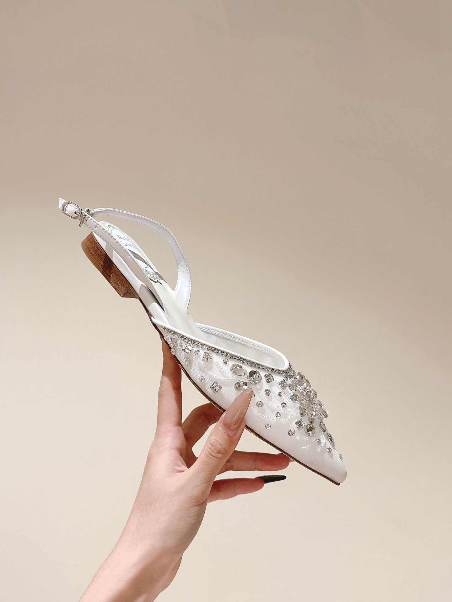 RC 25C Slingback Flat Shoe White Silk Rhinestones 268075