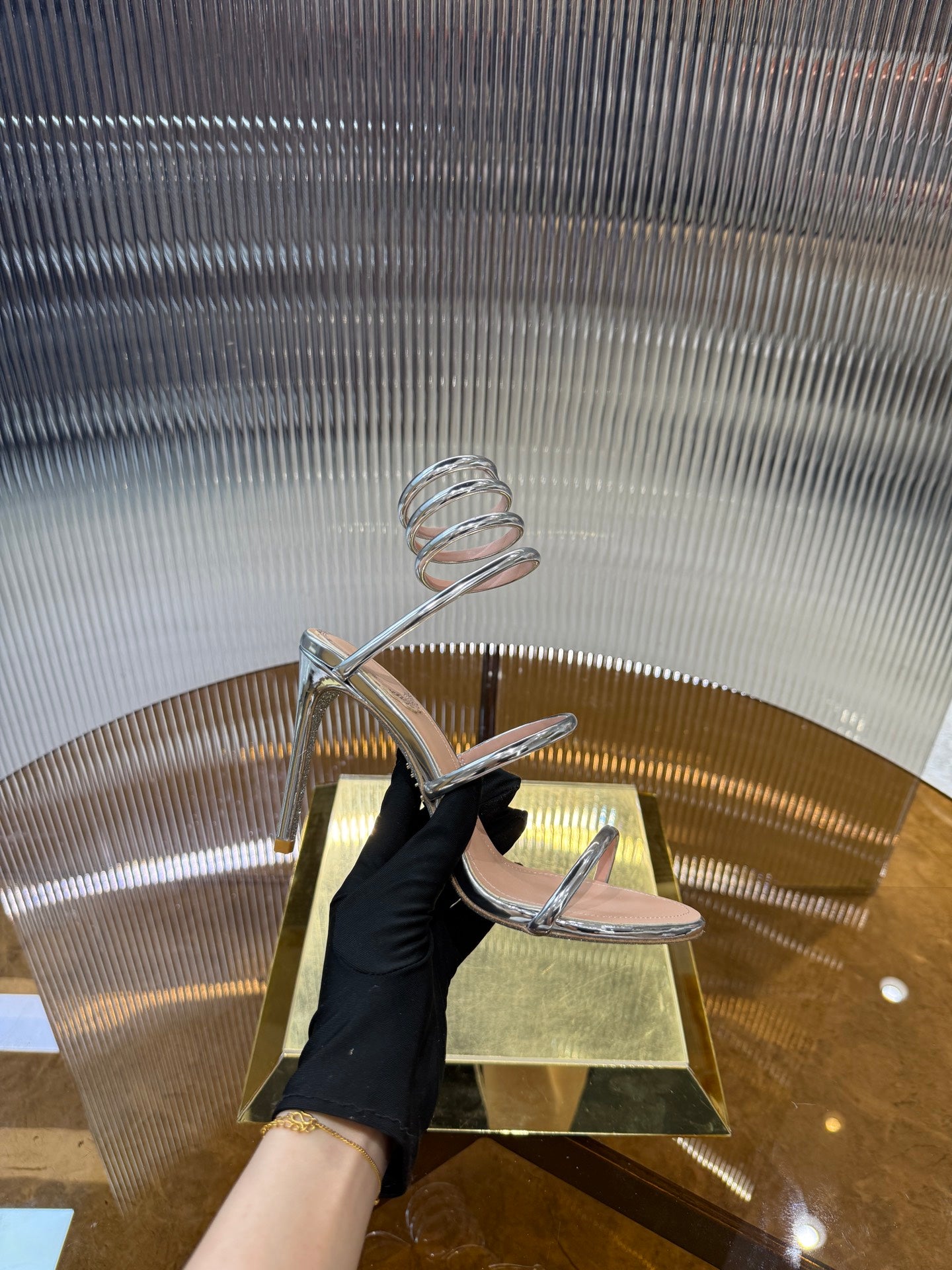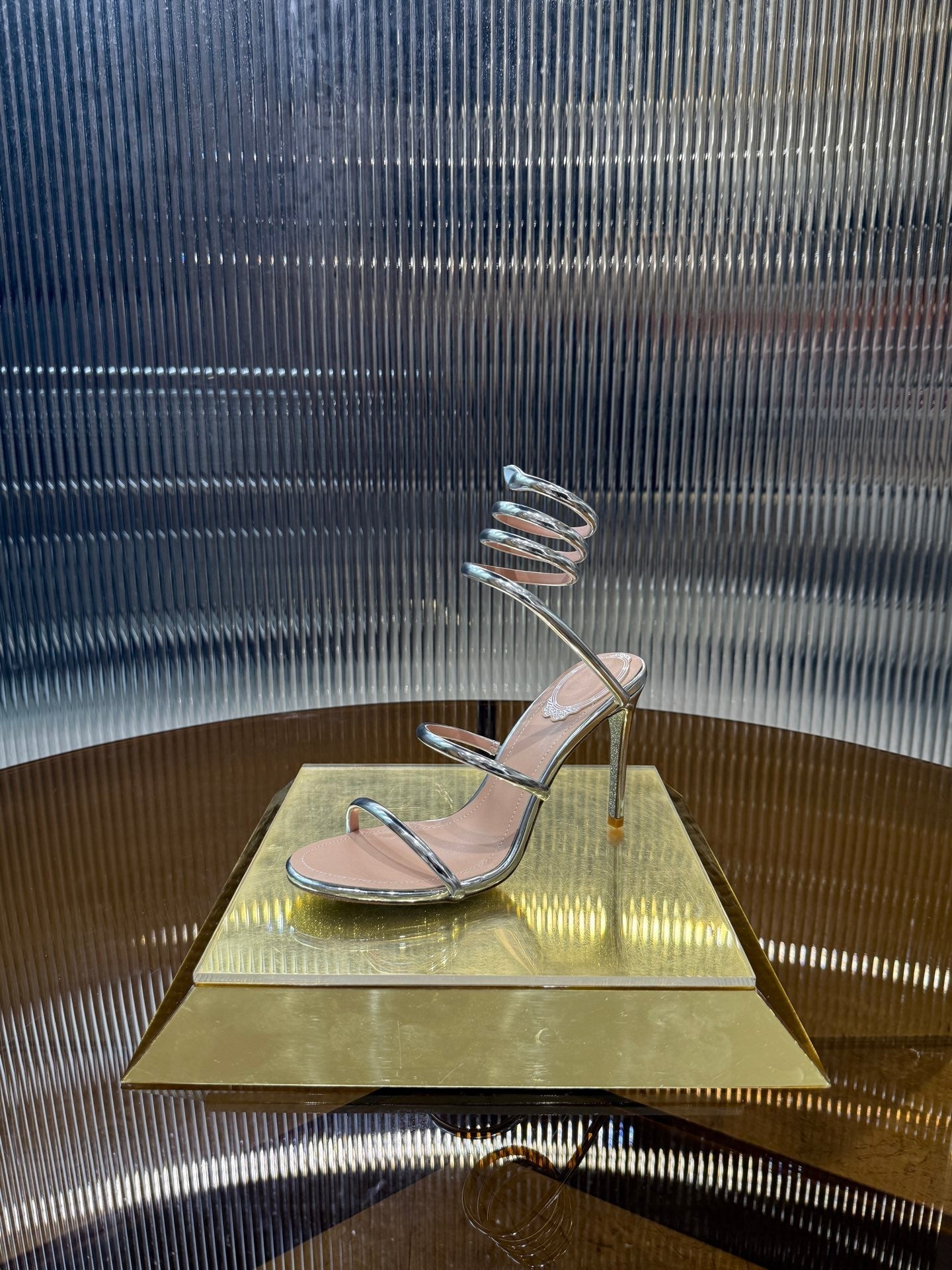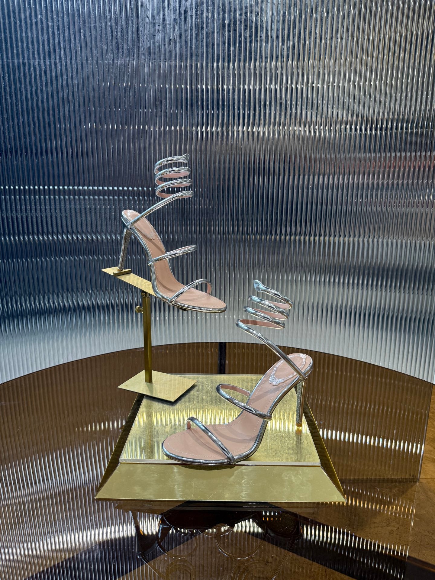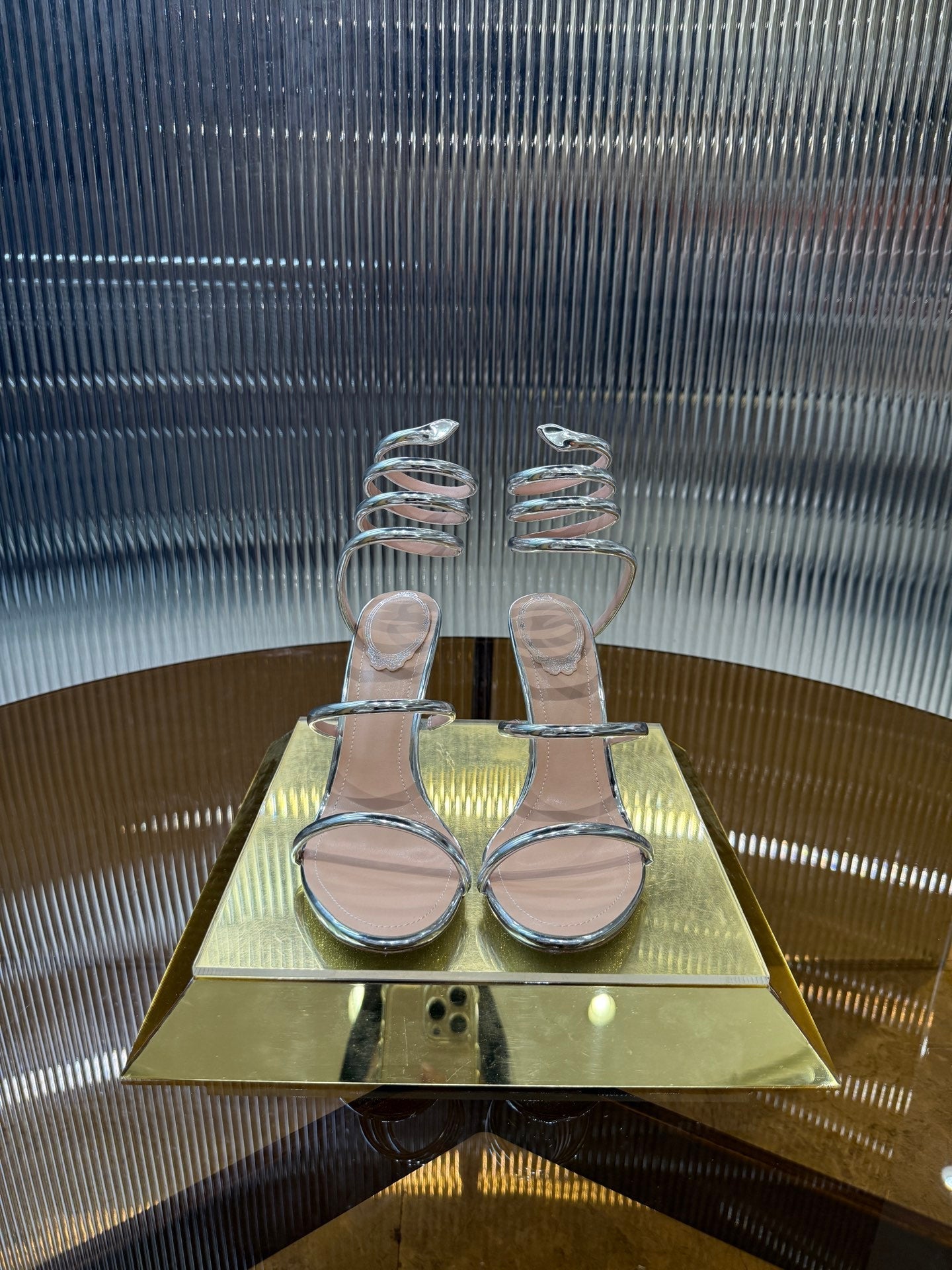 RC 25C Snake-Shaped Sandals 9.5cm Silver Sheepskin 310632