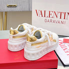 VT 2025 Garavani Sneakers White Gold Cowhide Fabric 546990