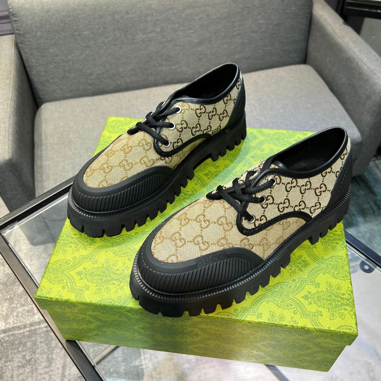 GG Men's 25 Maxi GG Lace up Sneaker Brown Black Cowhide